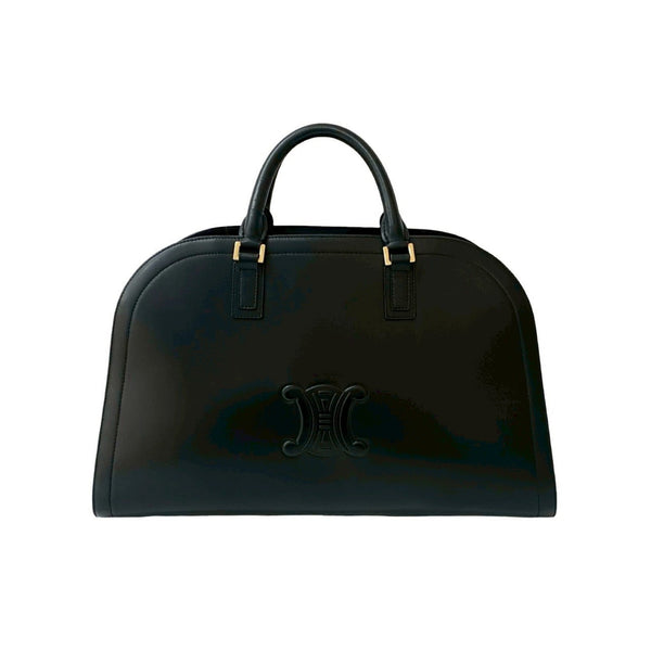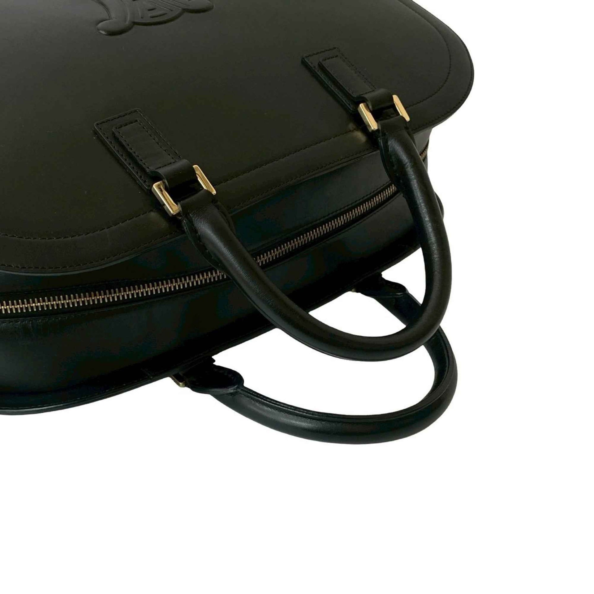CELINE Triomphe Logo Motif Leather Mini Boston Bag in Black (82590)