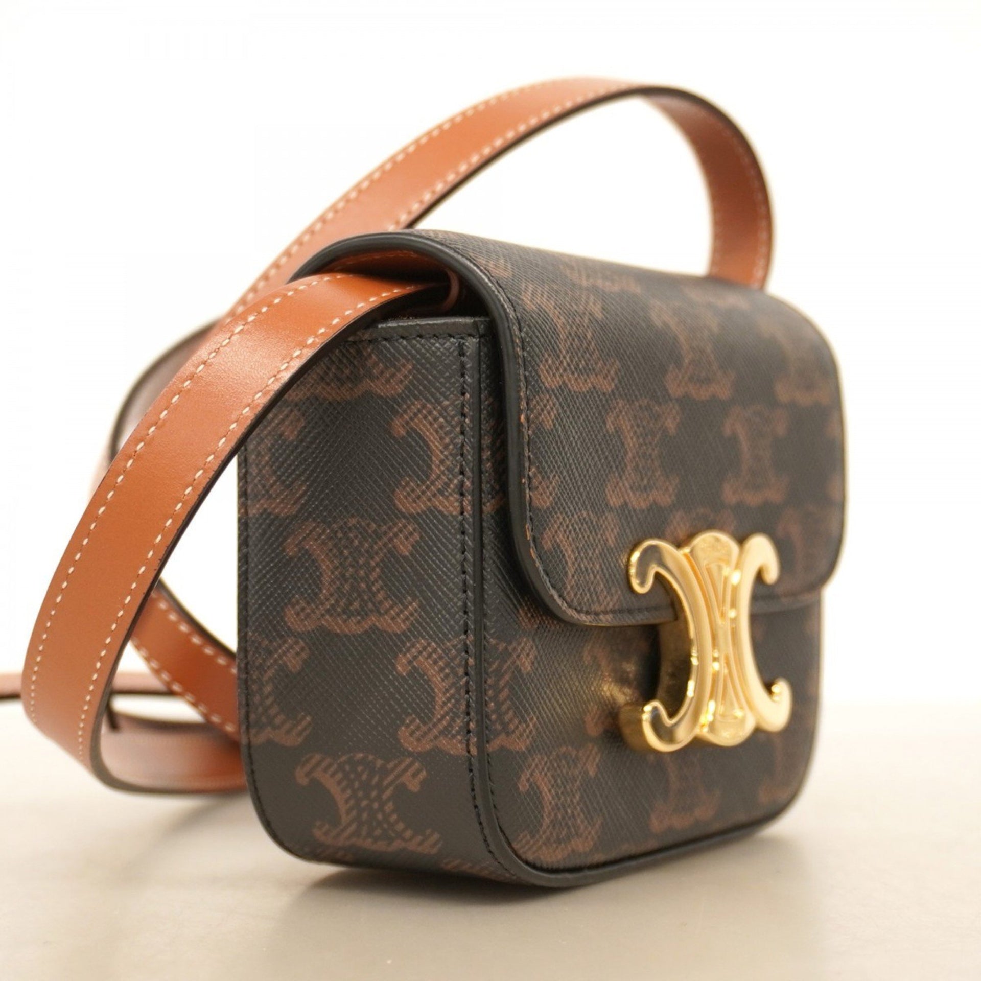 Celine Triomphe Shoulder Bag in Brown Leather for Women