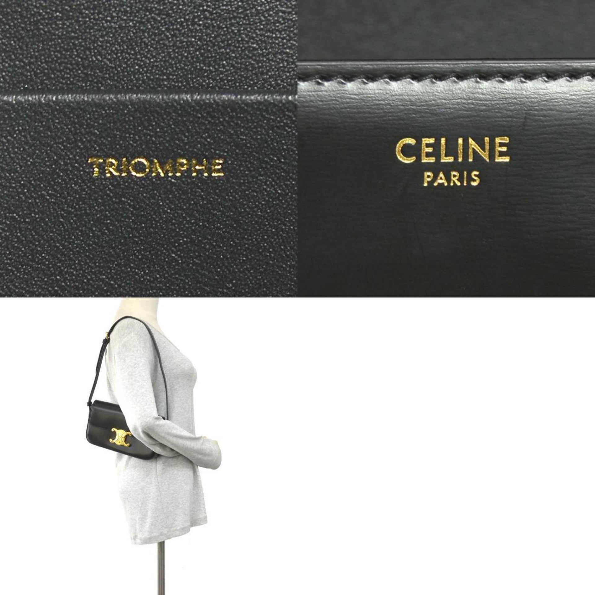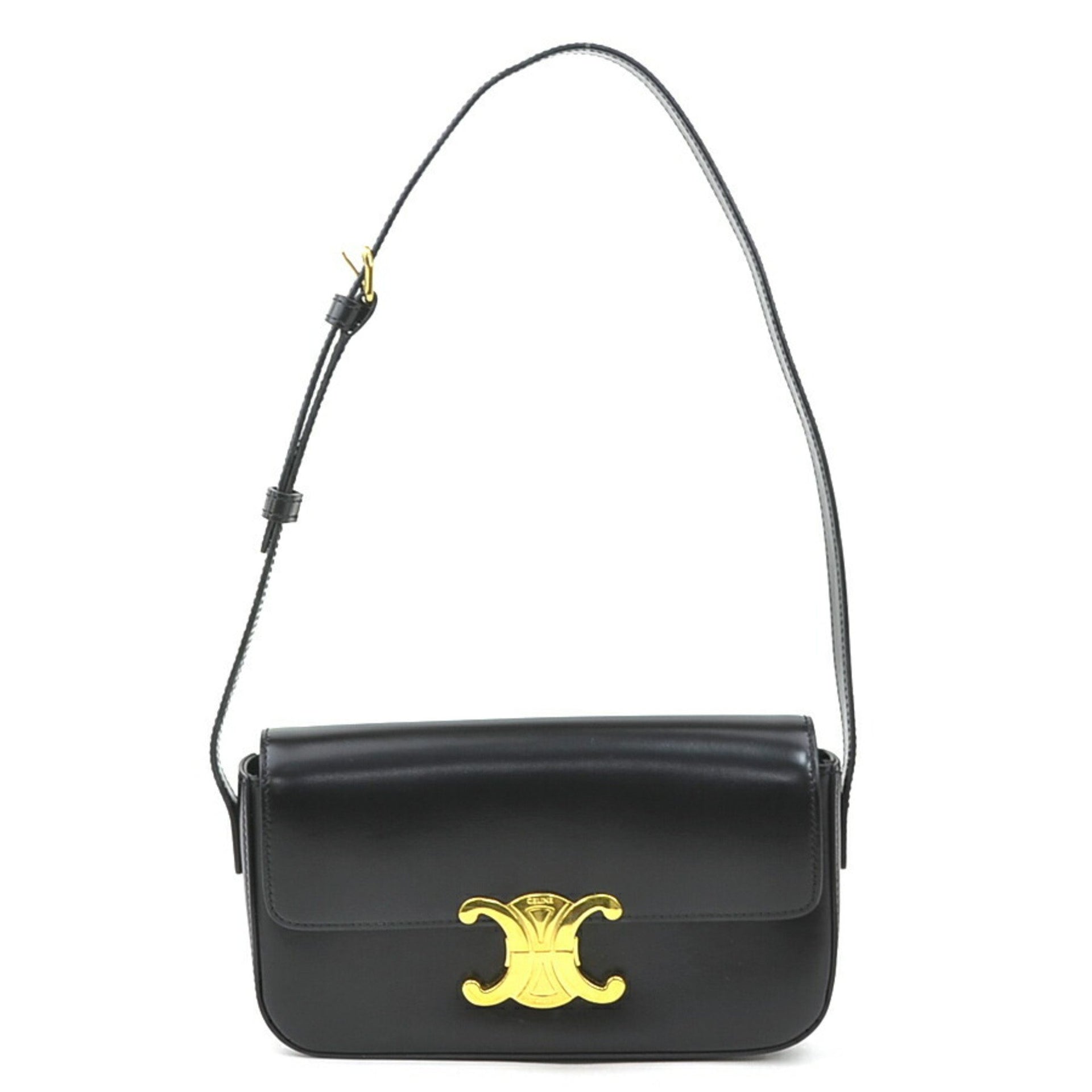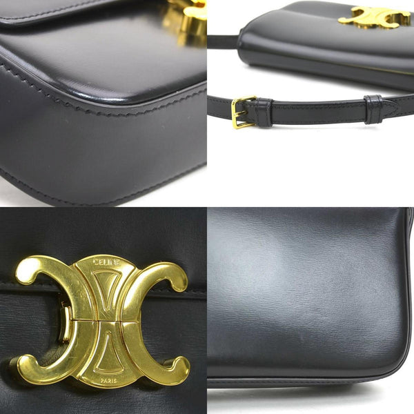 CELINE Triomphe Shoulder Bag Leather Black Women\'s 90137g