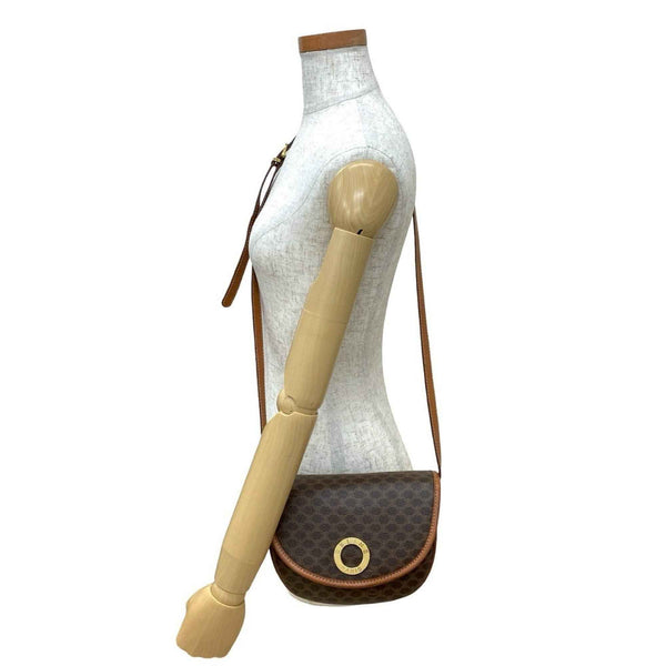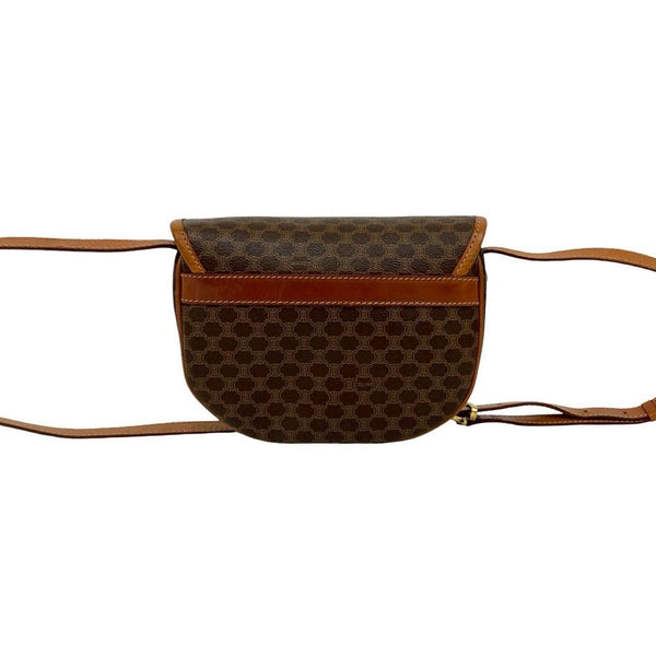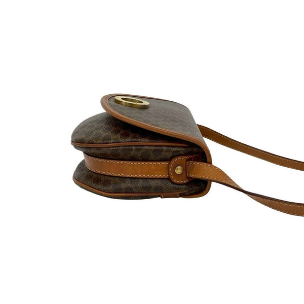 CELINE Vintage Circle Logo Hardware Macadam Leather Shoulder Bag/Pochette in Brown (56165)