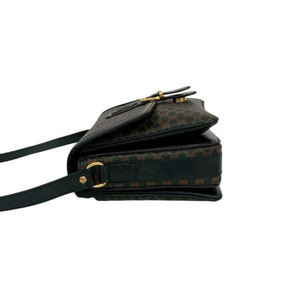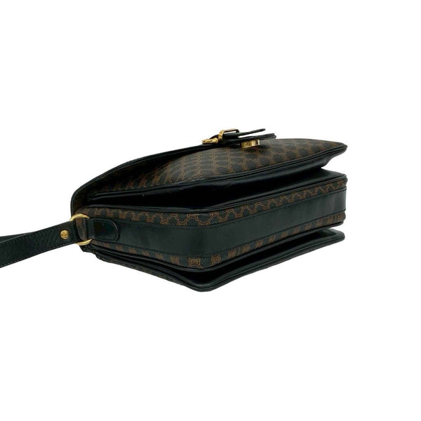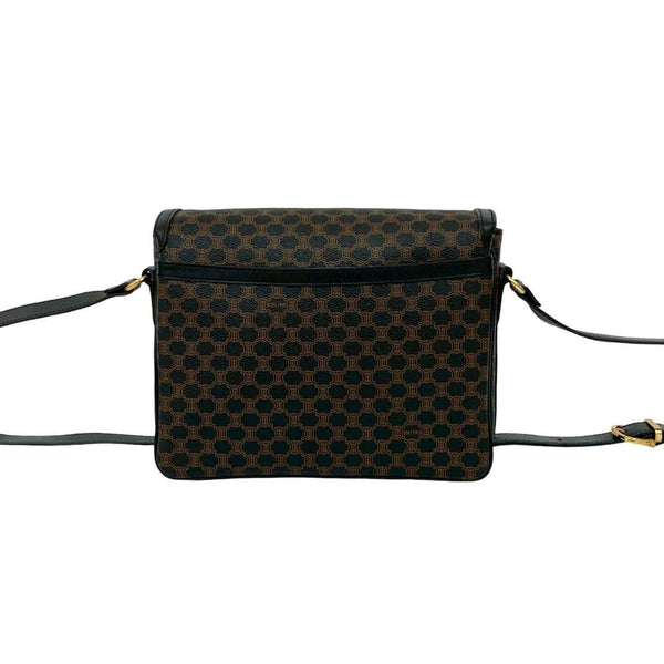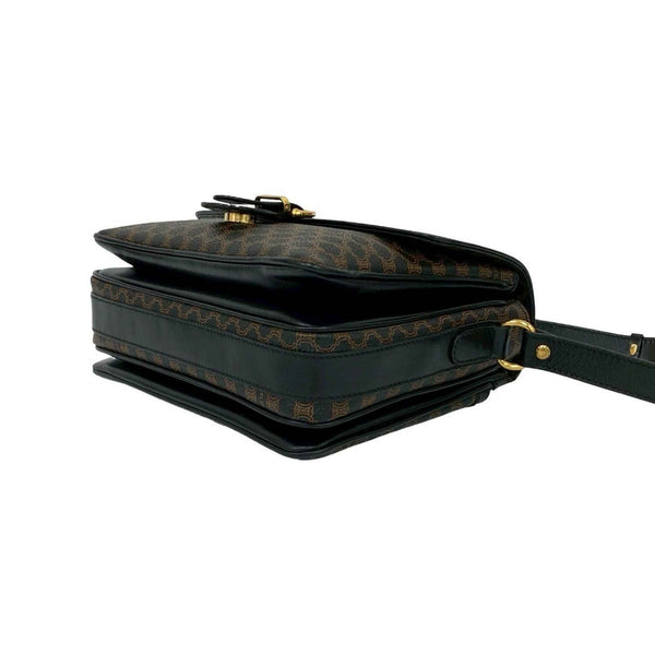 CELINE Vintage Macadam Blason Triomphe Logo Leather Shoulder Bag in Brown and Black (171-4)