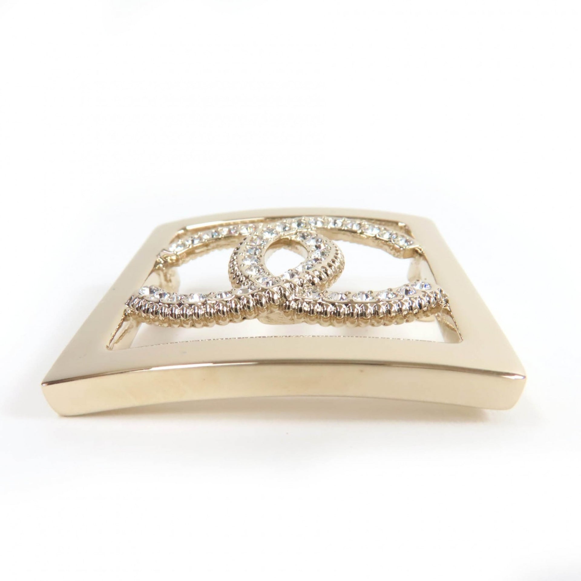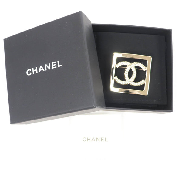 CHANEL A23P Coco Mark Rhinestone Brooch, Gold, with Box, Made in France, Women\'s