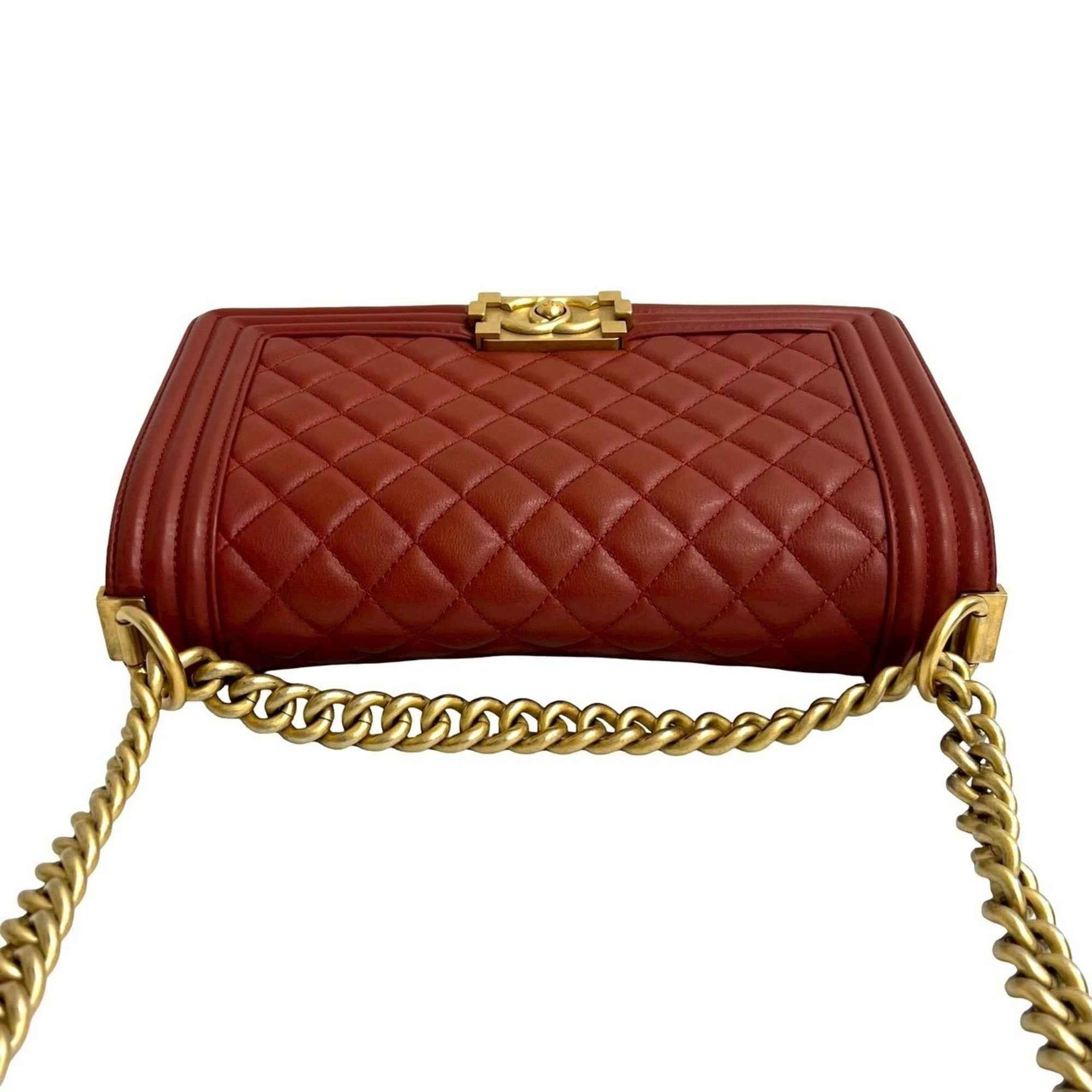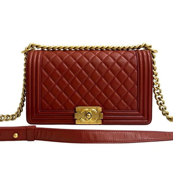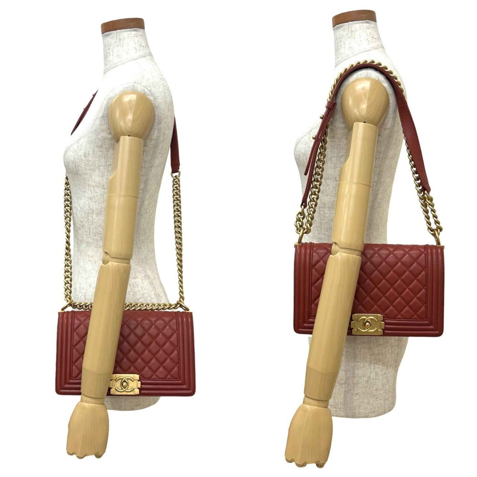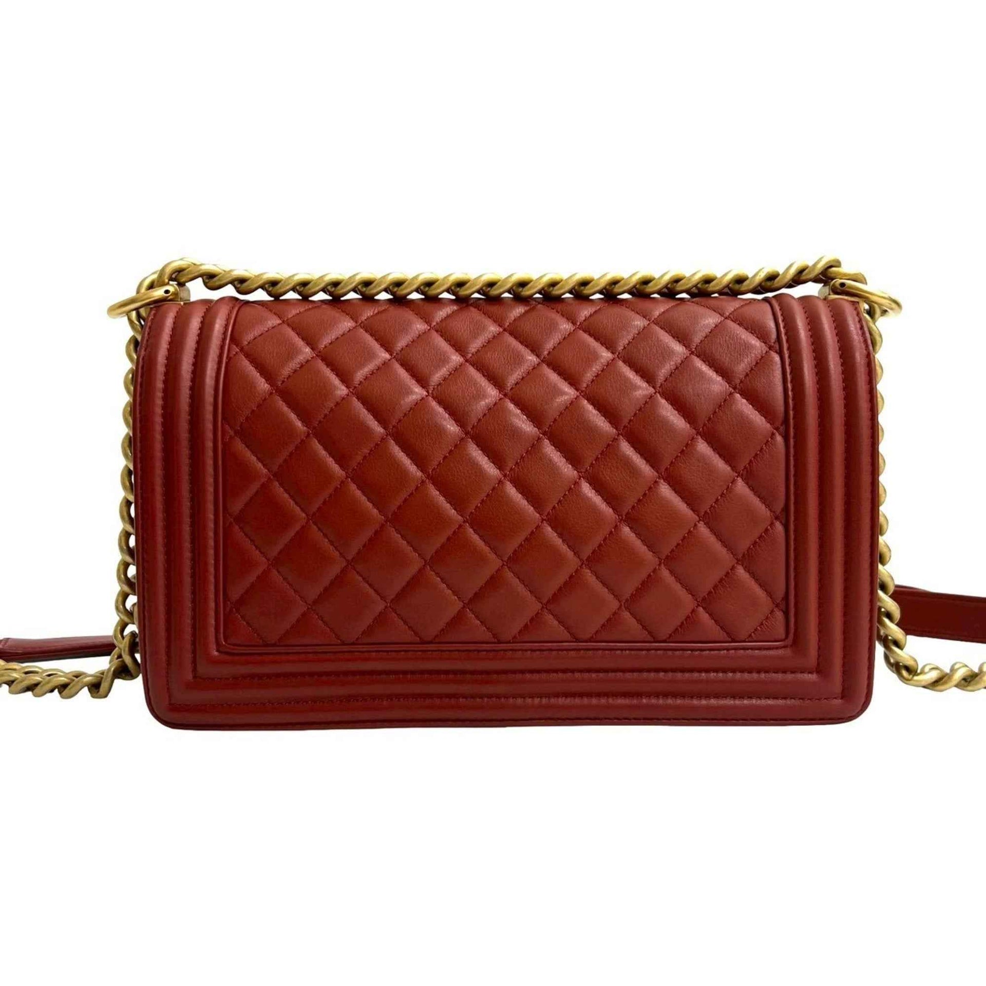 CHANEL Boy Chanel Coco Mark Lambskin Chain Shoulder Bag Red 41510