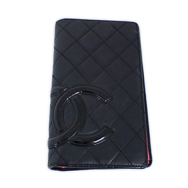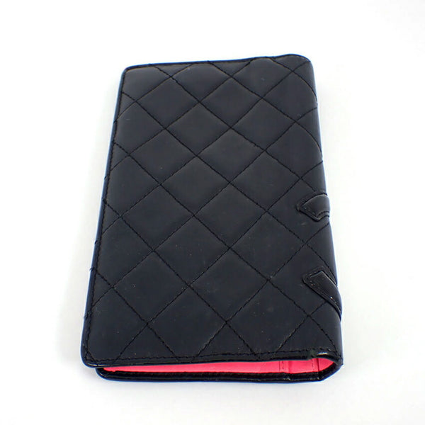 CHANEL Cambon Line Black x Pink Long Wallet b49-22