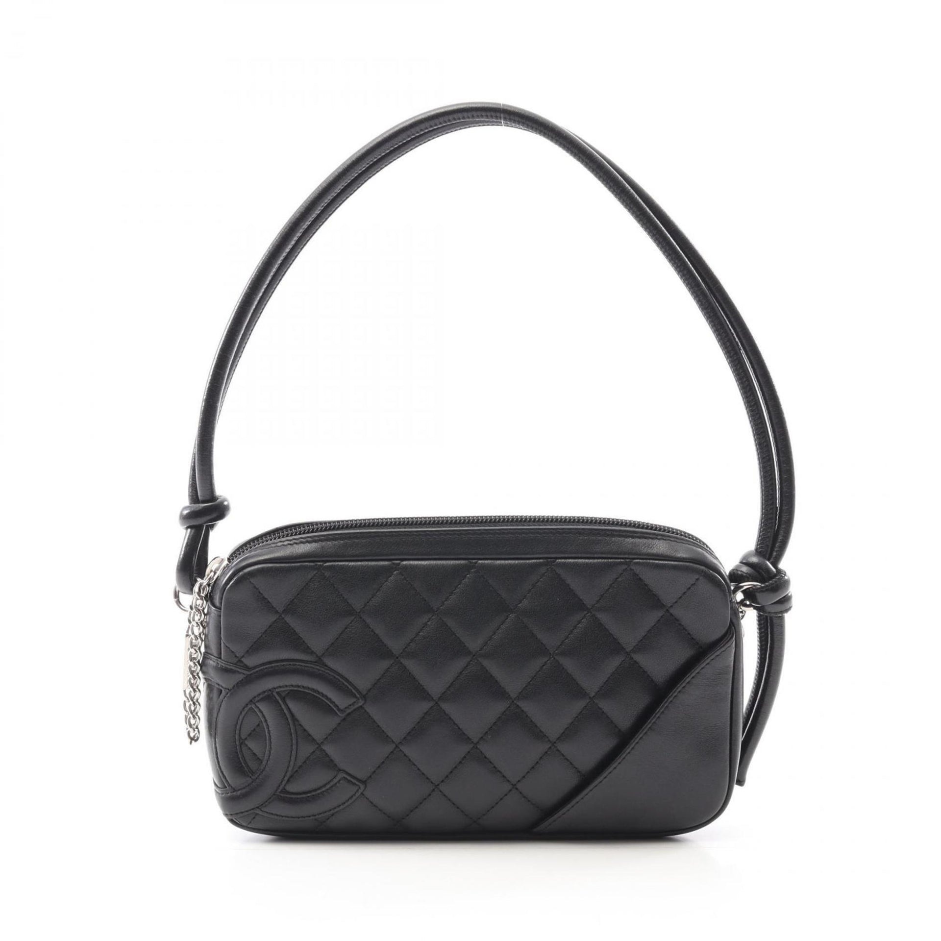 CHANEL Cambon Line Handbag, Leather, Women\'s, Black