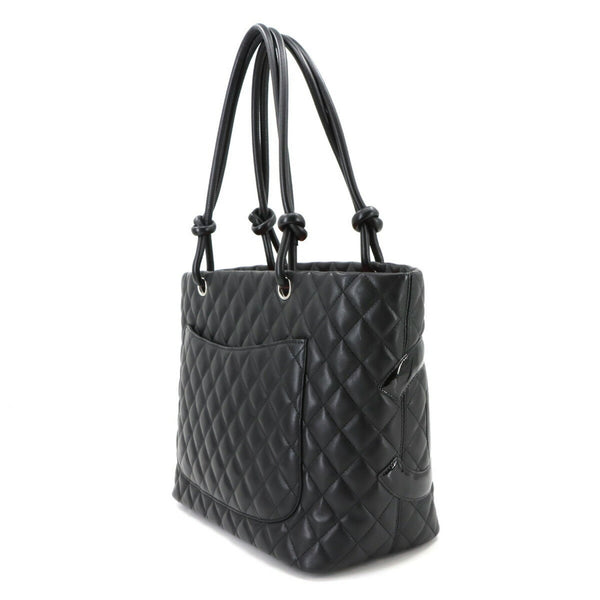CHANEL Cambon Line Large Tote Bag in Black Enamel Calfskin Leather (A25169)