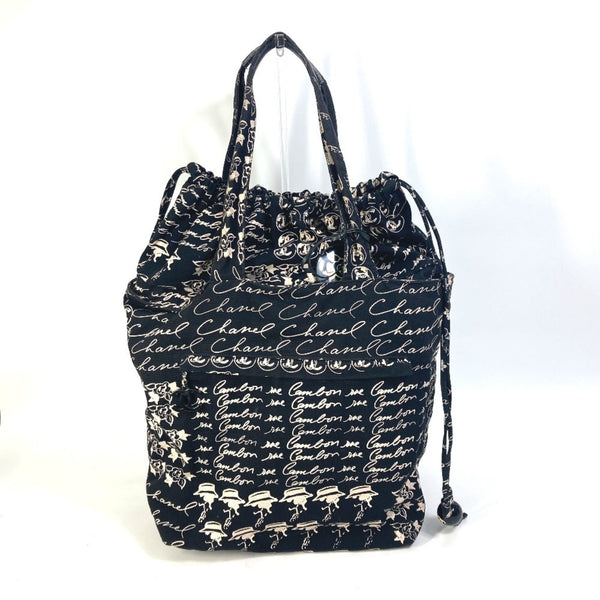 CHANEL Camellia Logo Bucket Drawstring Shoulder Bag Tote Canvas with Mirror Charm, Women\'s, Black