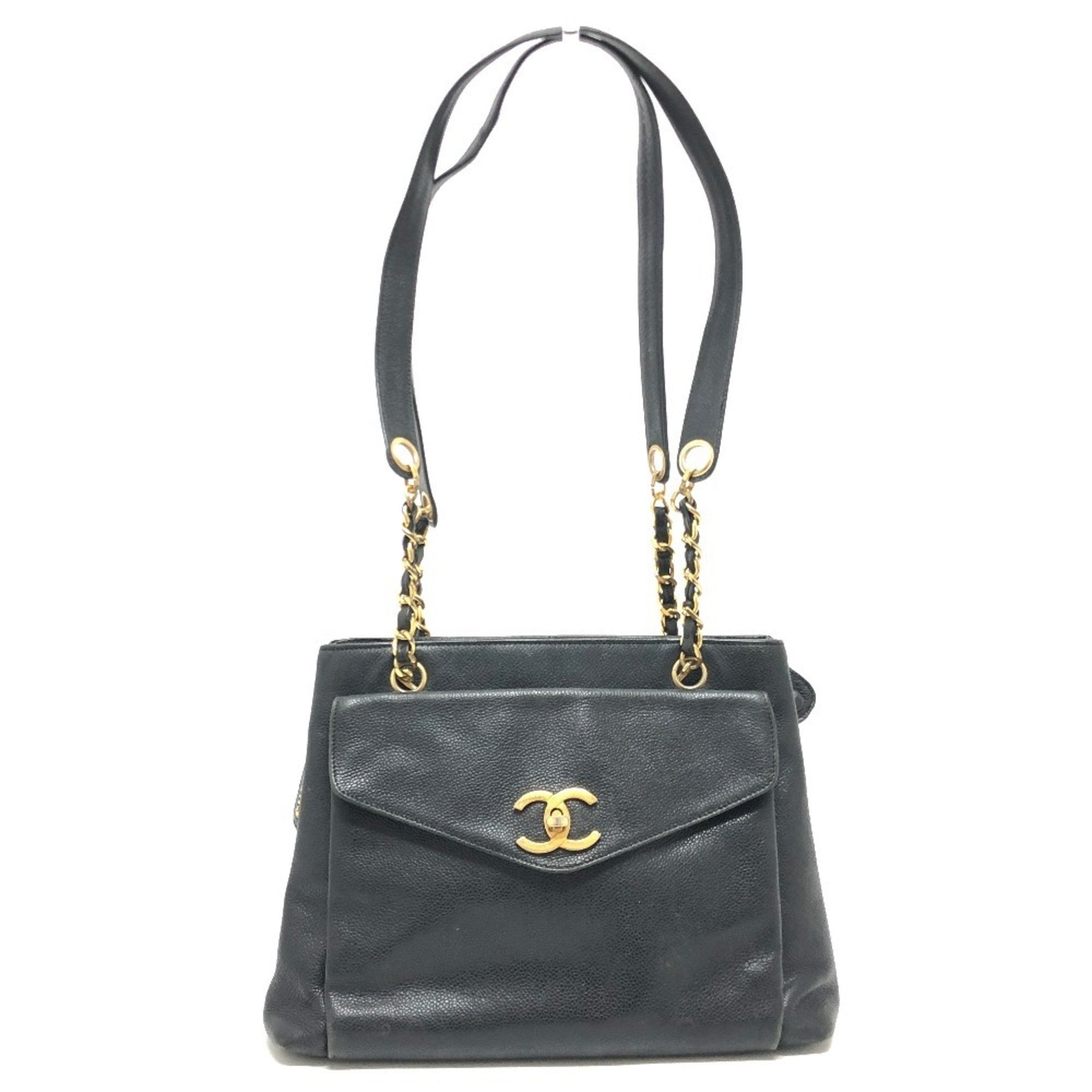 CHANEL CC Coco Mark Chain Shoulder Tote Bag Caviar Skin Women\'s Black