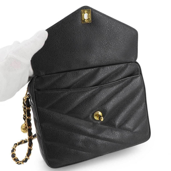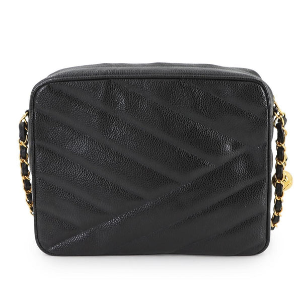 CHANEL Chain Shoulder Bag in Caviar Leather with Black and Gold Hardware