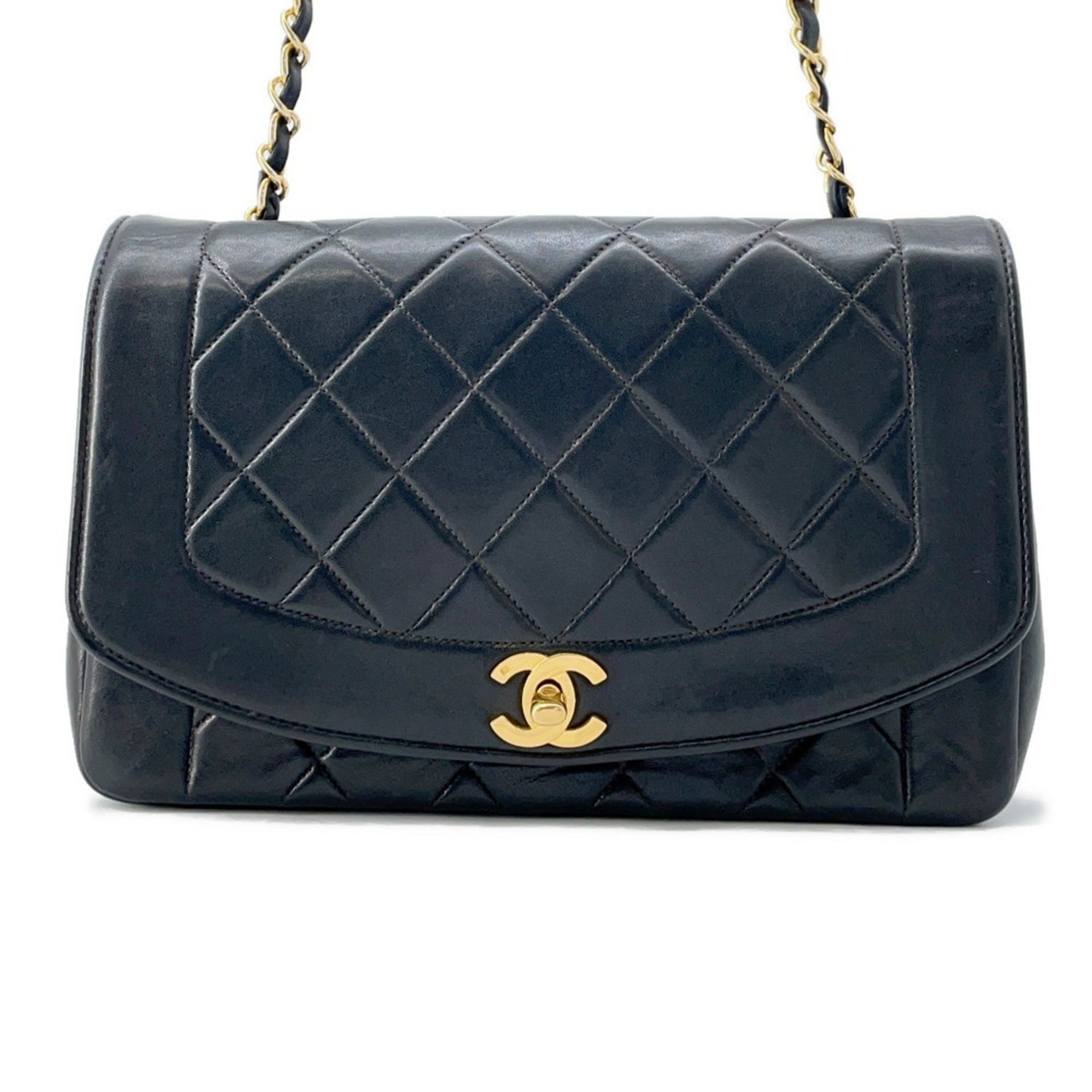 Chanel Chain Shoulder Bag Matelasse 25 Coco Mark Diana A01165 CHANEL Black