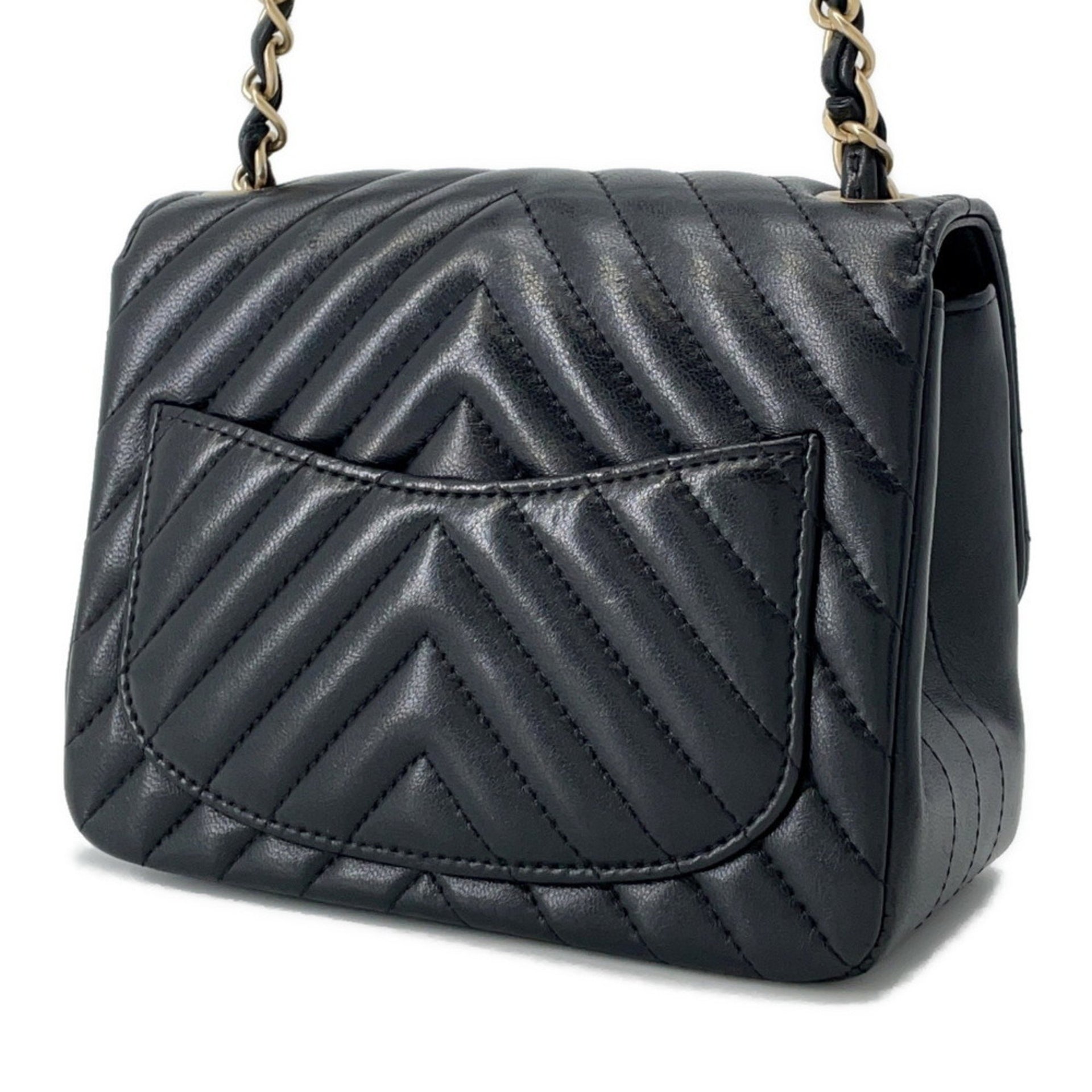 Chanel Chain Shoulder Bag with Chevron V-Stitching and Lambskin Leather, A35200, Black