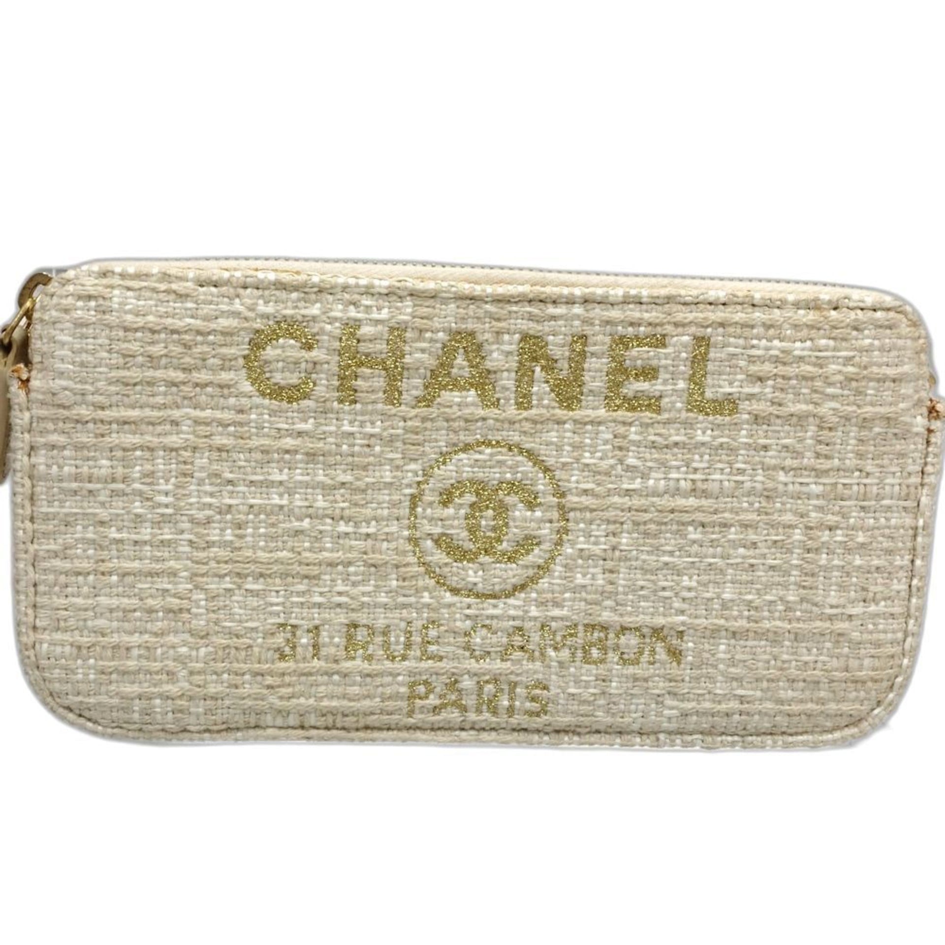 CHANEL Chain Wallet A84415 Deauville Shoulder Bag in Beige Canvas, Women\'s, 181802