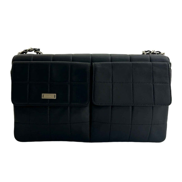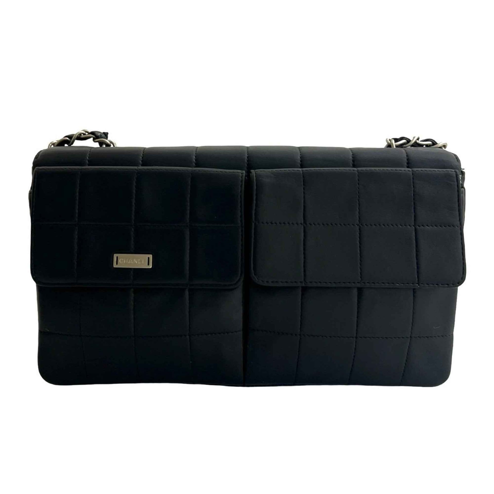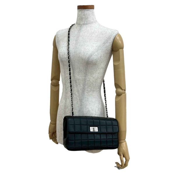 CHANEL Chocobar 2.55 Lambskin Leather Chain Shoulder Bag, Black, 13294