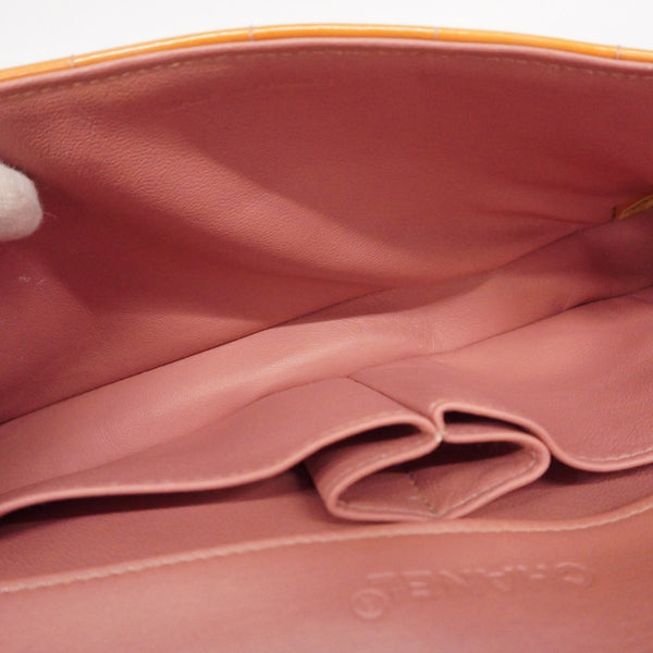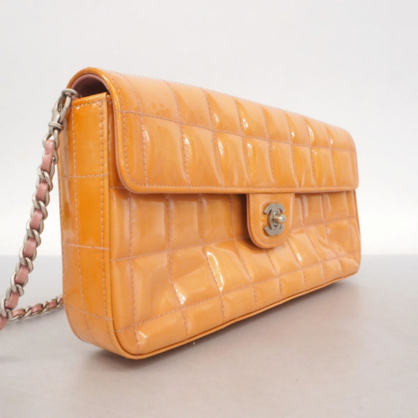 Chanel Chocobar Shoulder Bag with Chain Bag, Patent Leather, Orange, Women\'s, P1704684