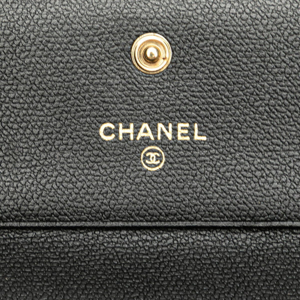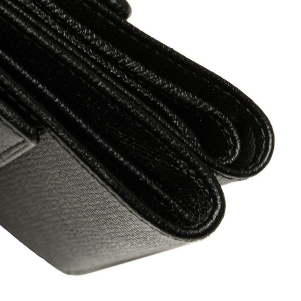 CHANEL Coco Button Tri-fold Wallet Black Leather Women\'s