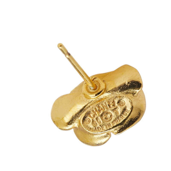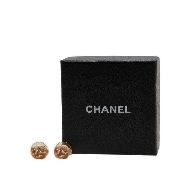 Chanel Coco Mark Camellia Flower Motif Earrings, Gold/Beige Plated, Women\'s, CHANEL