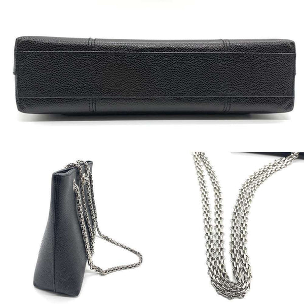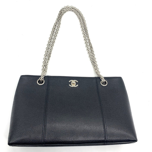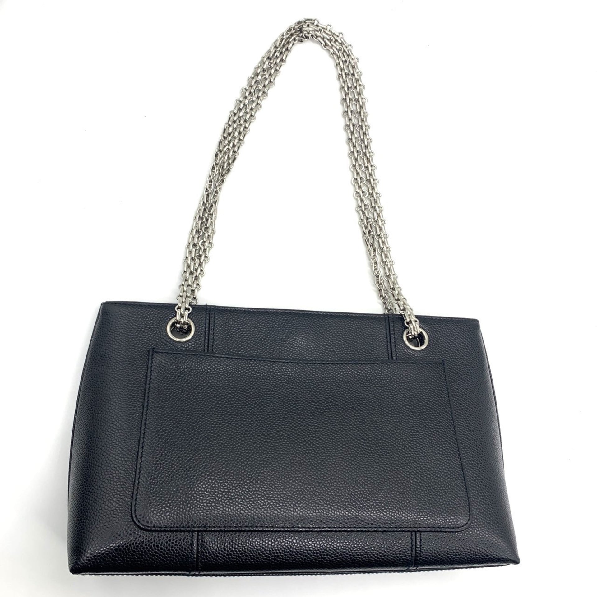 CHANEL COCO MARK CAVIAR SKIN CHAIN TOTE BAG BLACK