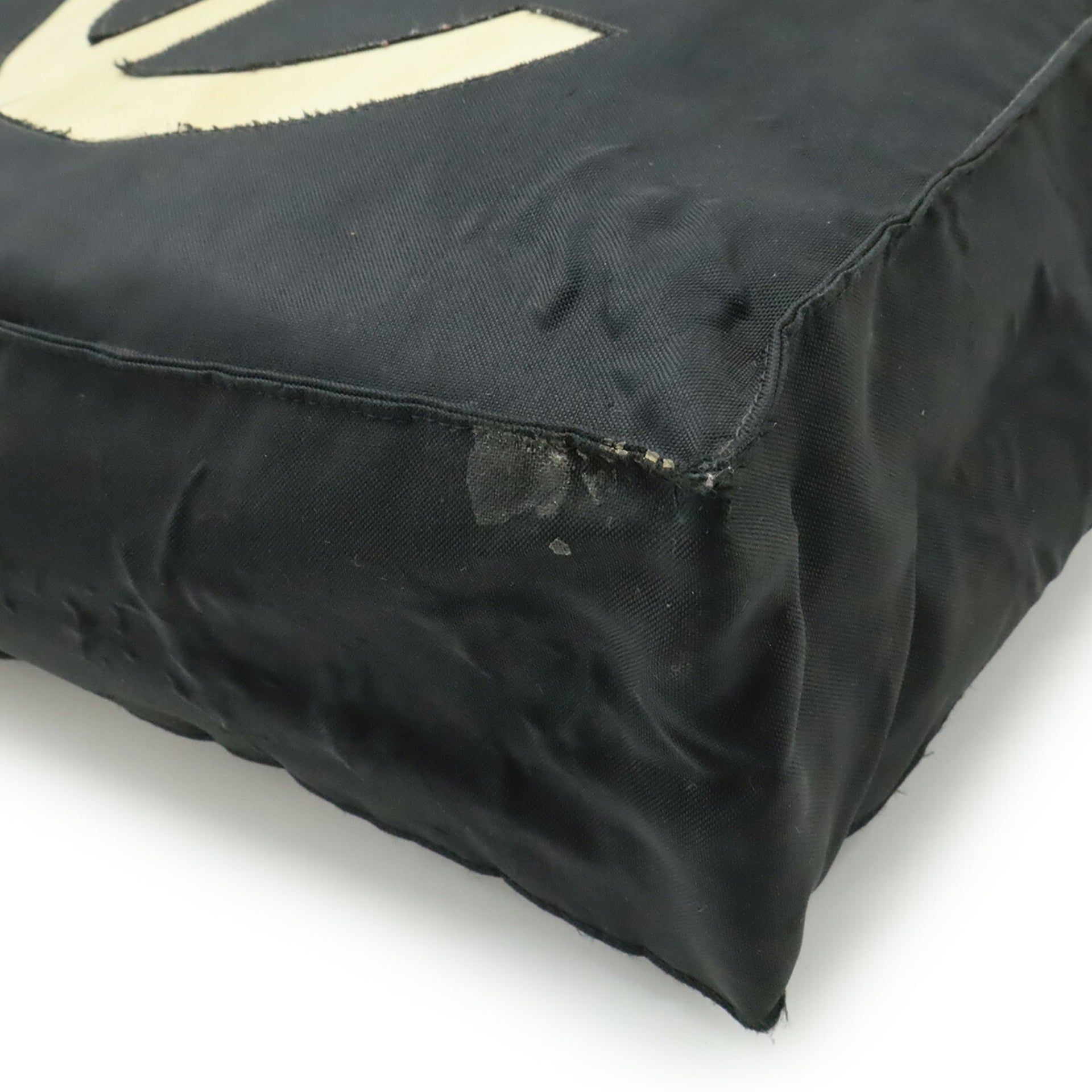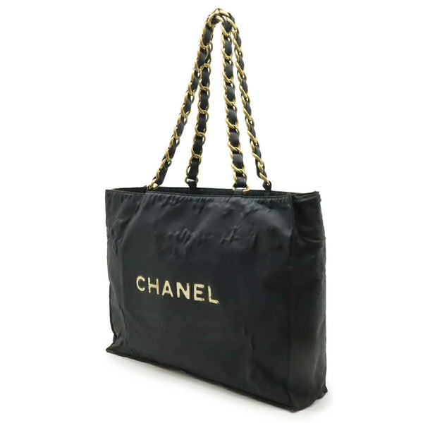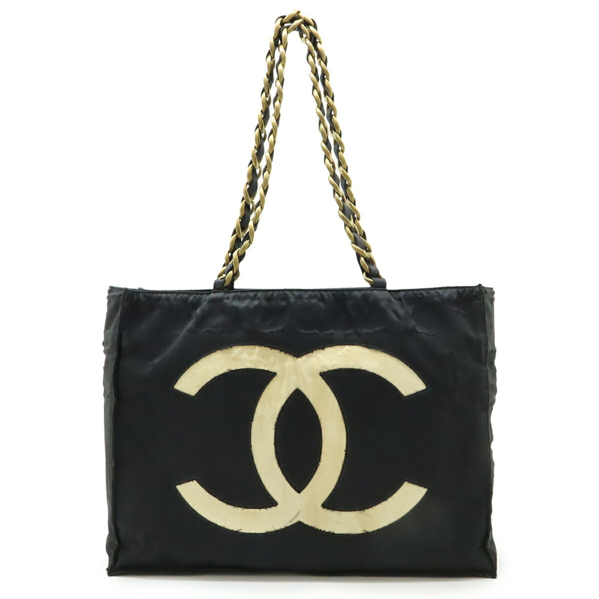CHANEL Coco Mark Chain Shoulder Big Tote Bag Nylon Black White