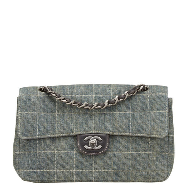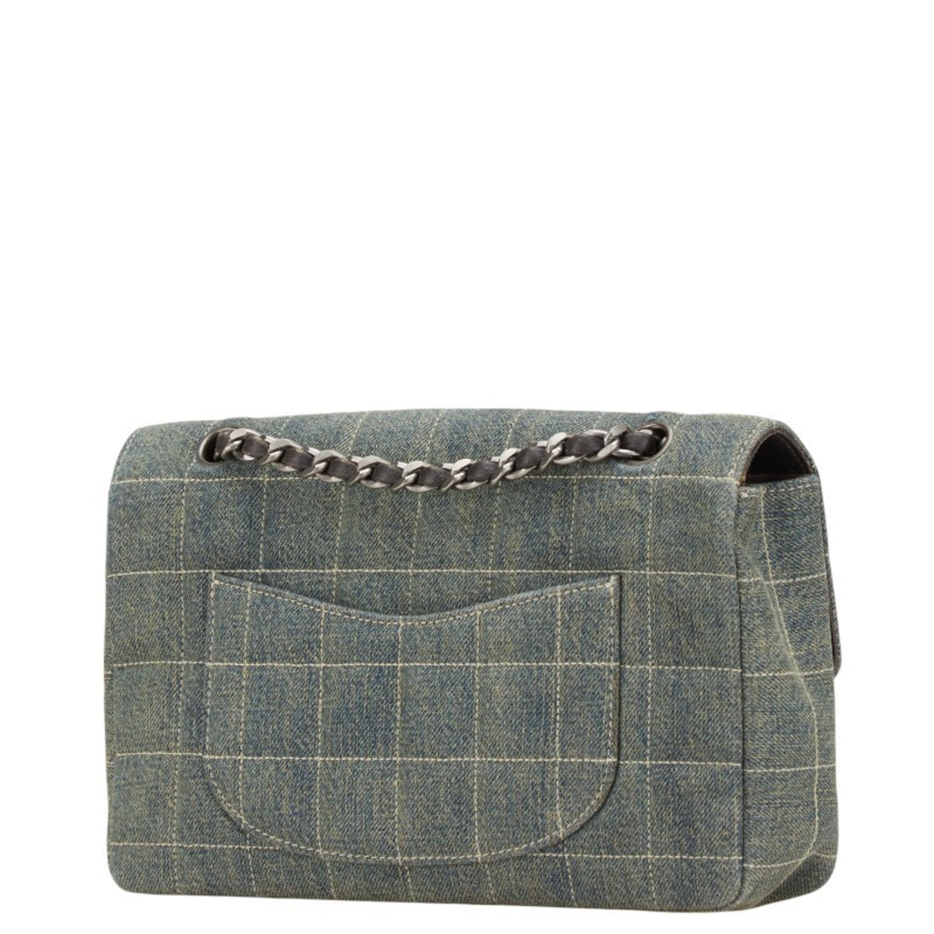 Chanel Coco Mark Chocolate Bar Chain Shoulder Bag in Light Blue, Black, Denim and Leather for Women