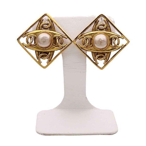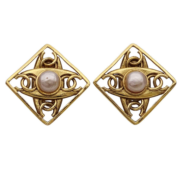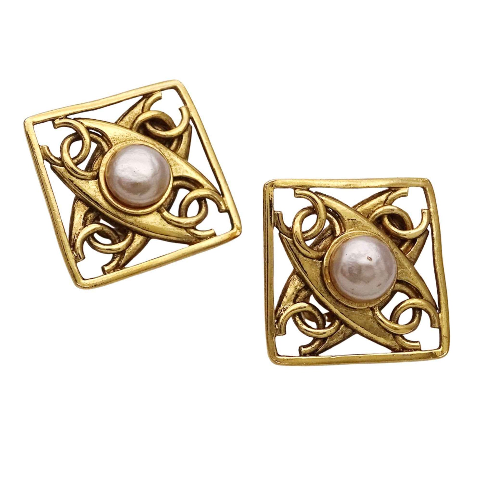 CHANEL Coco Mark Earrings, Women\'s, Brand GP, Faux Pearl, Gold