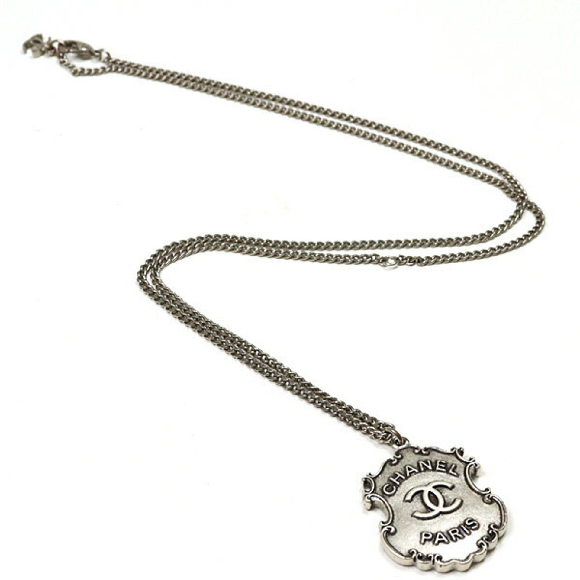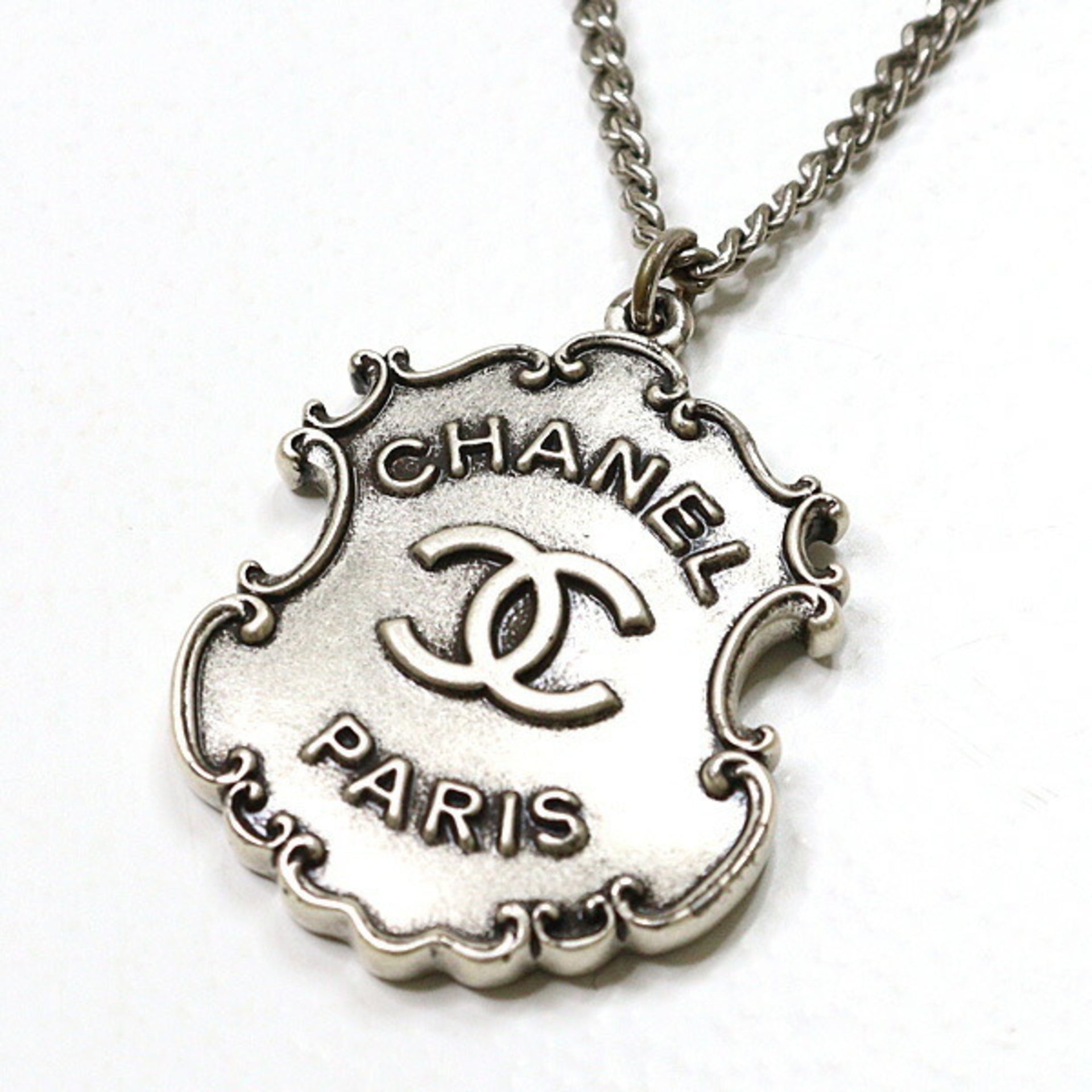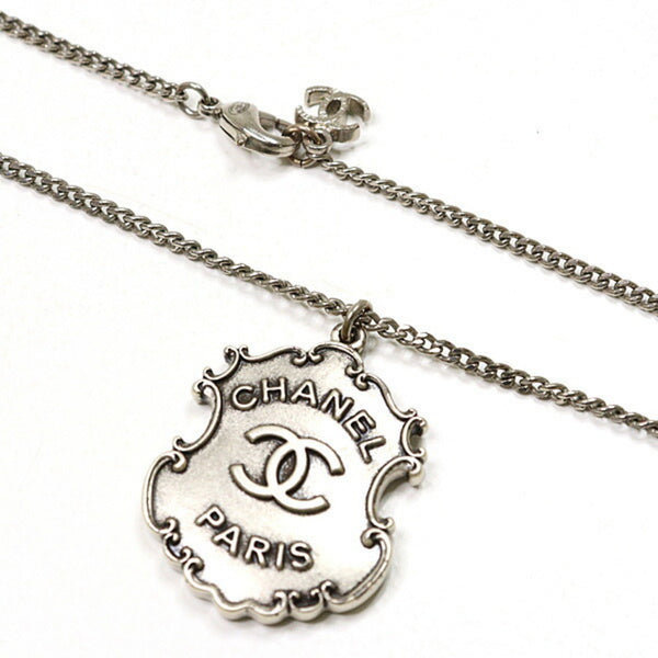 CHANEL Coco Mark Emblem Necklace, Metal, Silver (Oxidized Finish), A14A