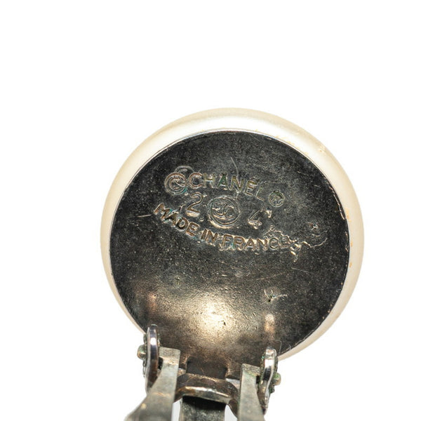 CHANEL Coco Mark Faux Pearl Drop Earrings Silver Metal Women\'s