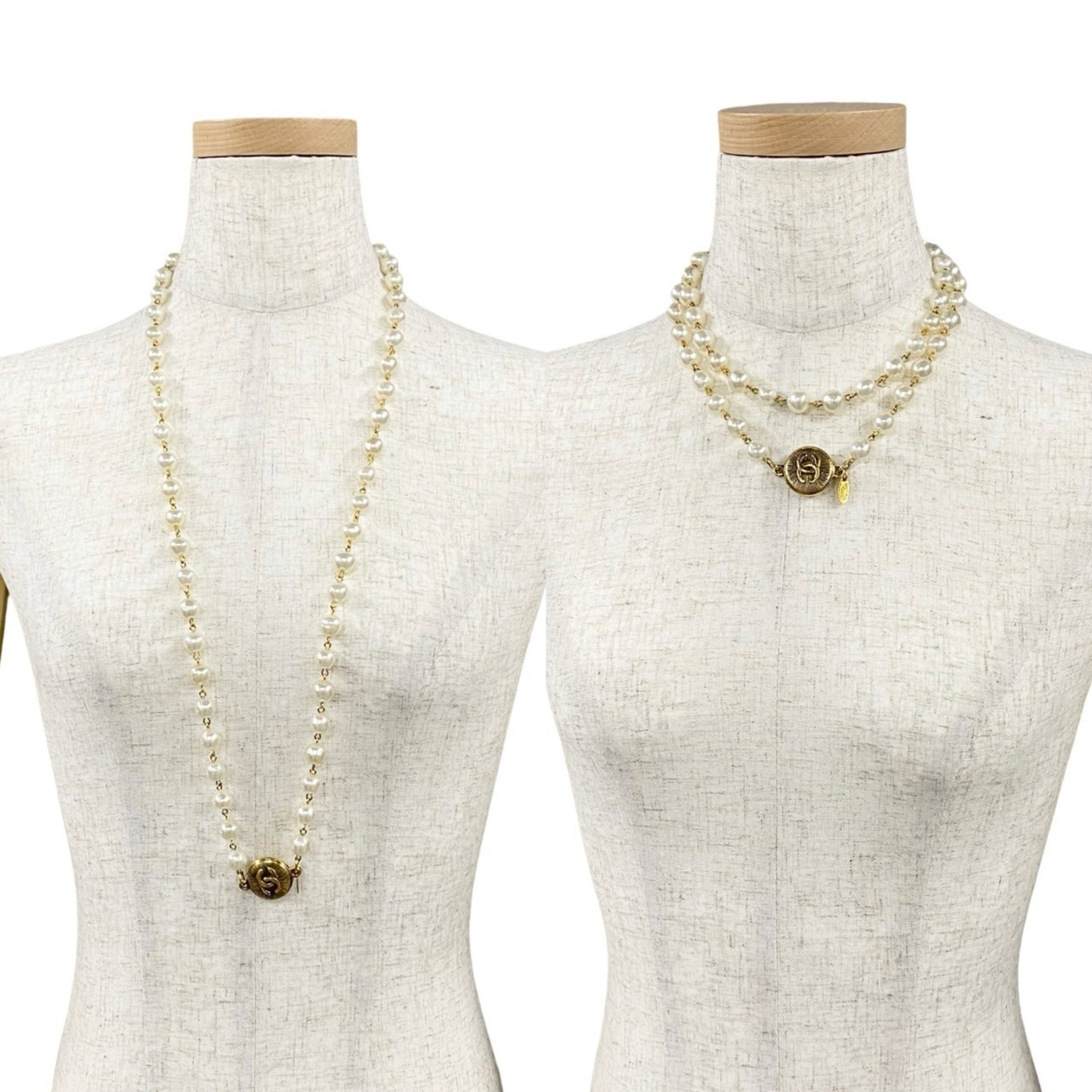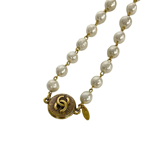 CHANEL Coco Mark Faux Pearl GP Necklace Choker Pendant White Gold 49989