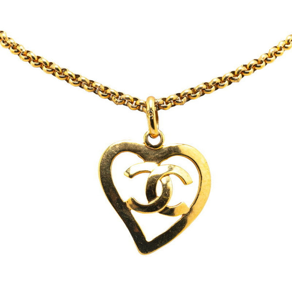 Chanel Coco Mark Heart Chain Pendant Necklace Gold Plated Women\'s CHANEL