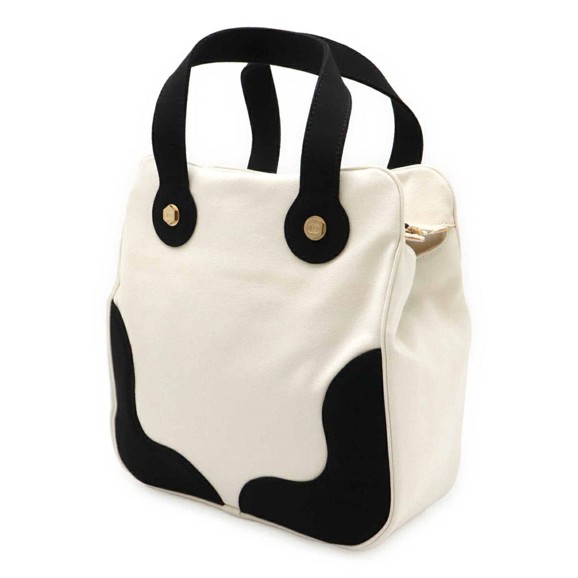 CHANEL Coco Mark Marshmallow Bag Tote Handbag Canvas Ivory White Black A24224