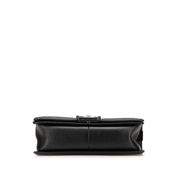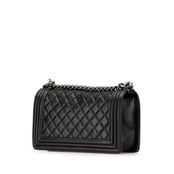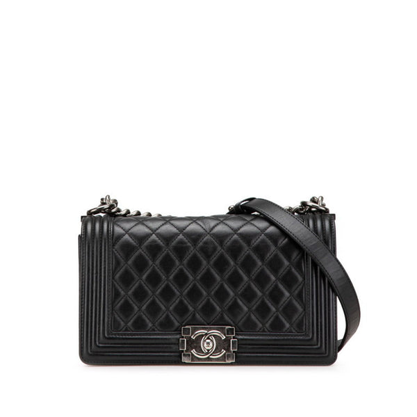 CHANEL Coco Mark Matelasse Boy Chanel 25 Crossbody Chain Shoulder Bag in Black Lambskin for Women