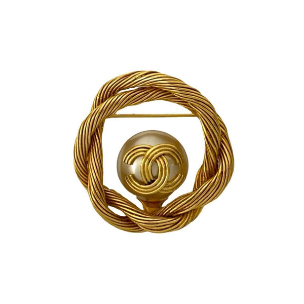 CHANEL Coco Mark Motif GP Faux Pearl Brooch Corsage Gold 3302k