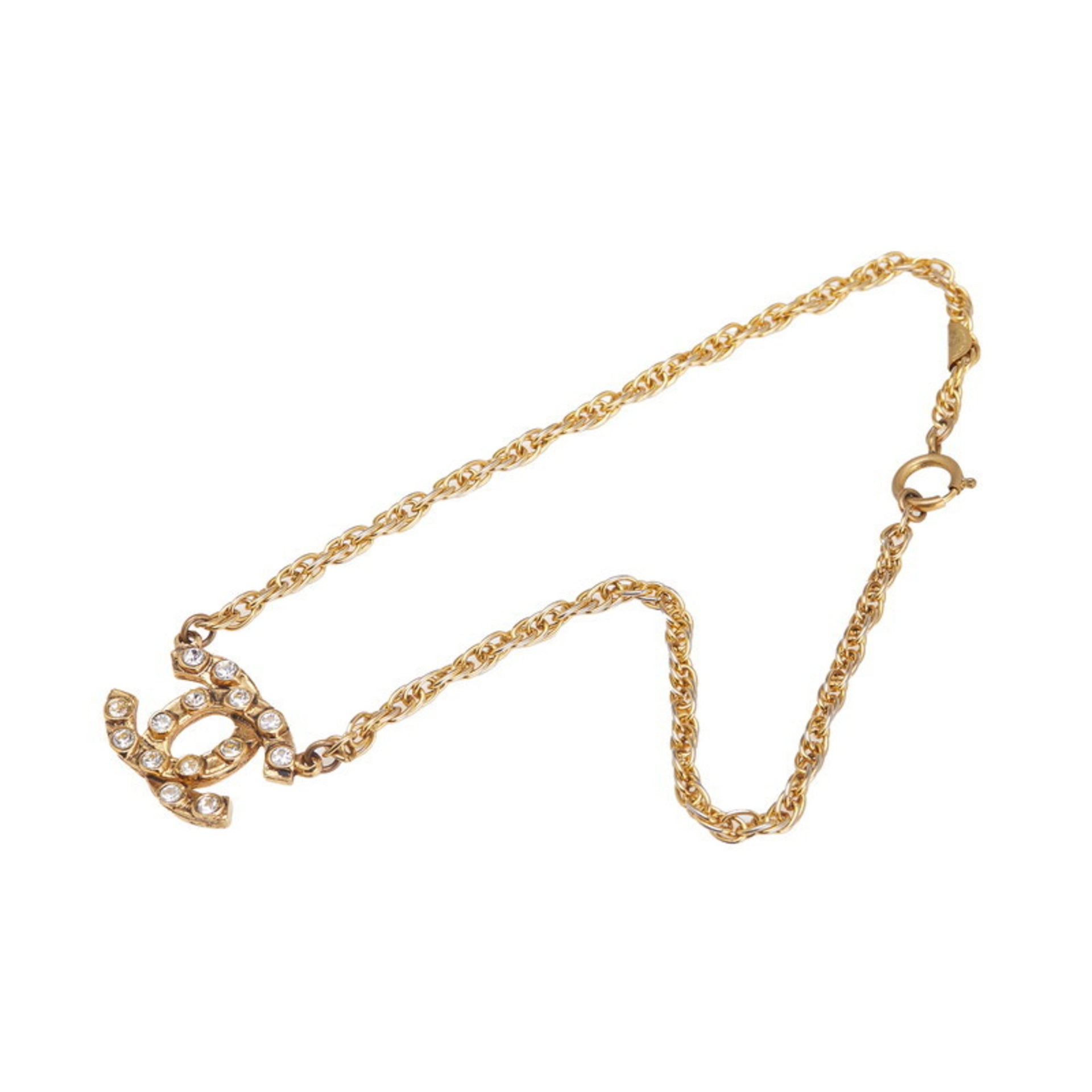 Chanel Coco Mark Necklace, Gold Plated with Rhinestones, Women\'s, CHANEL
