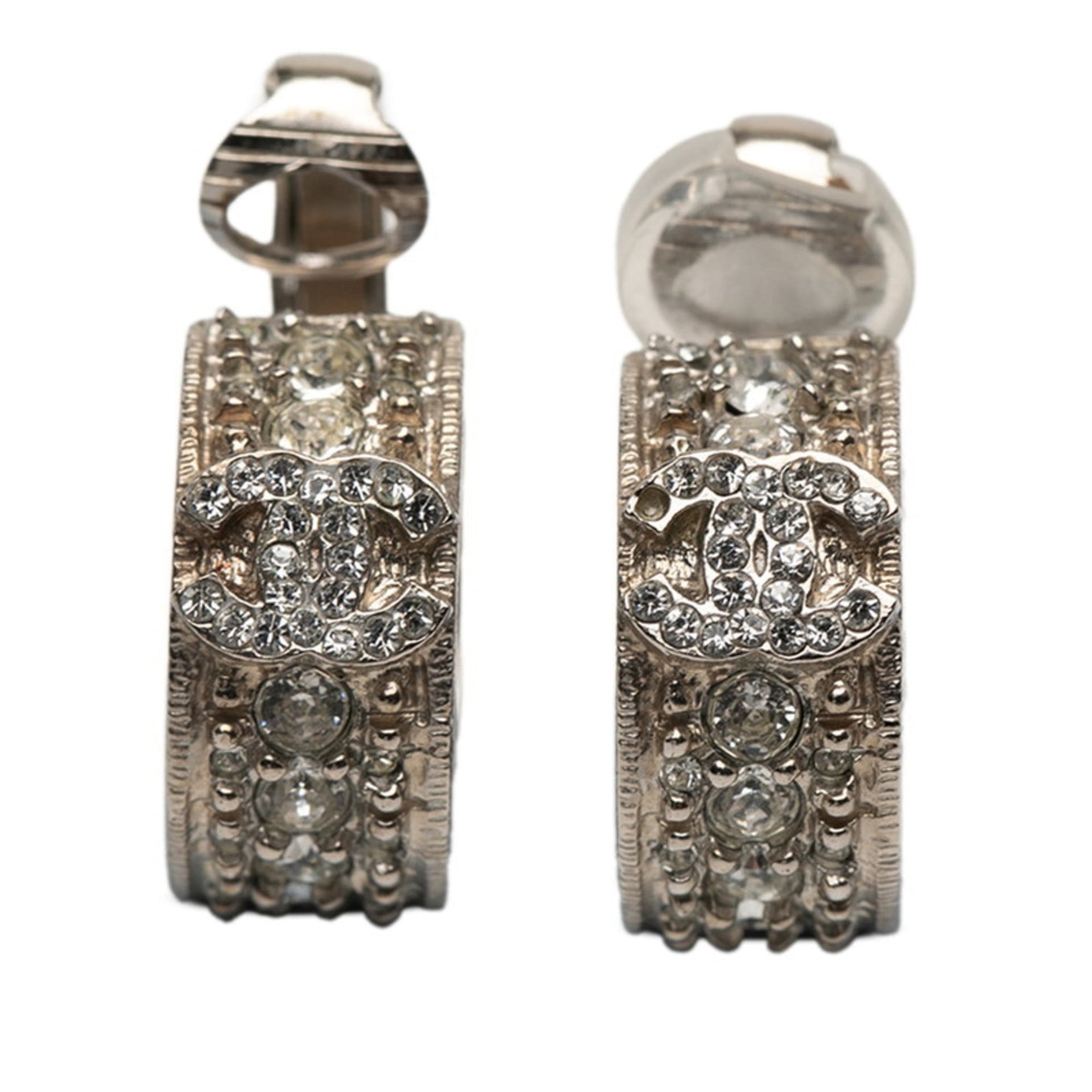 CHANEL Coco Mark Rhinestone Earrings, Gold Plated, Women\'s
