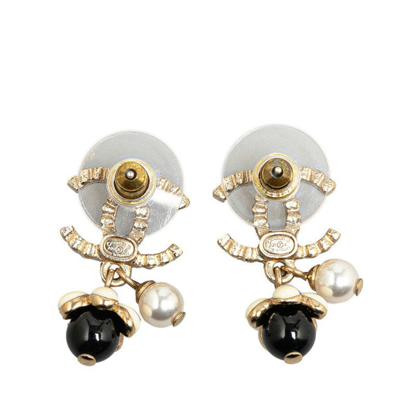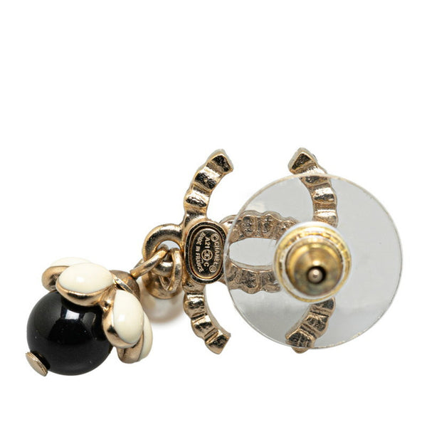 Chanel Coco Mark Rhinestone Flower Motif Earrings Gold Plated Women\'s CHANEL
