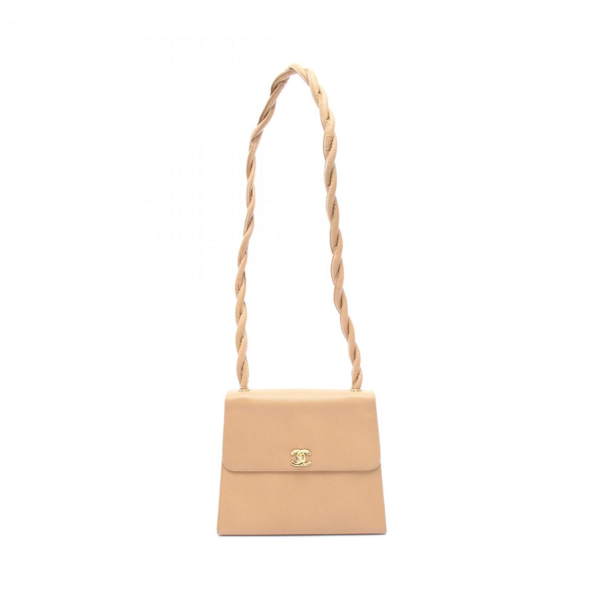 CHANEL Coco Mark Twist Handle Shoulder Bag Caviar Skin (Grained Calf) Women\'s Beige