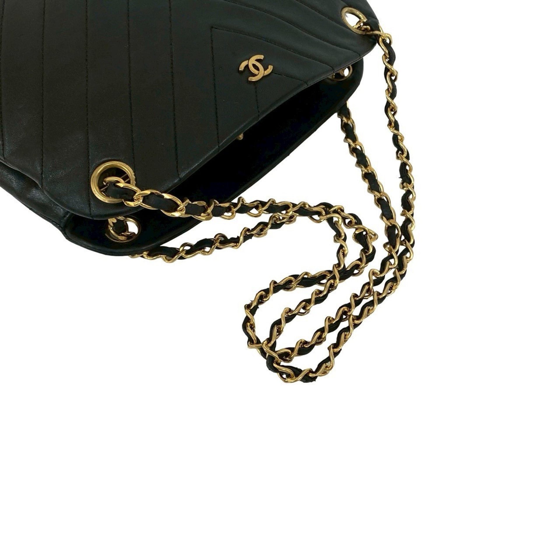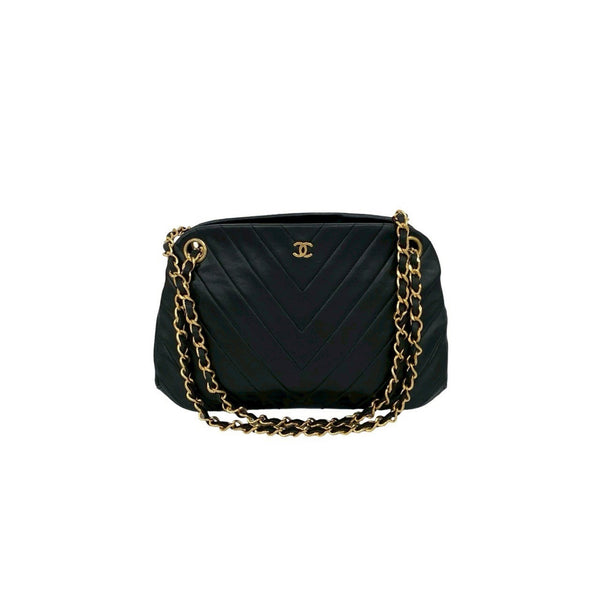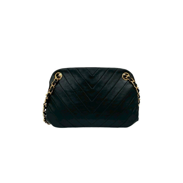 CHANEL Coco Mark V-Stitch Lambskin Clasp Chain Shoulder Bag Black 09279