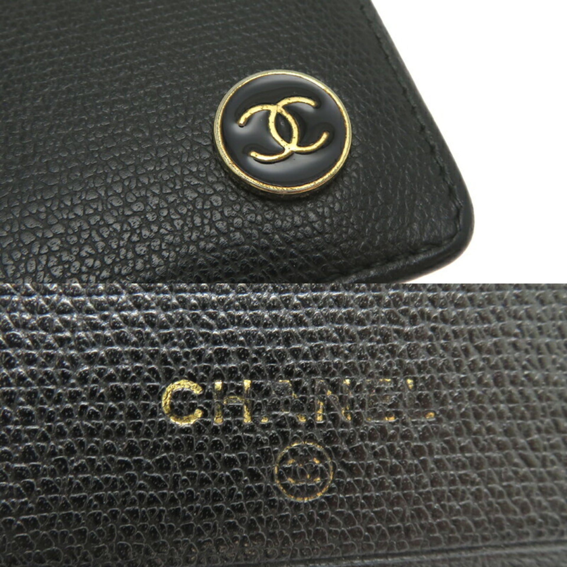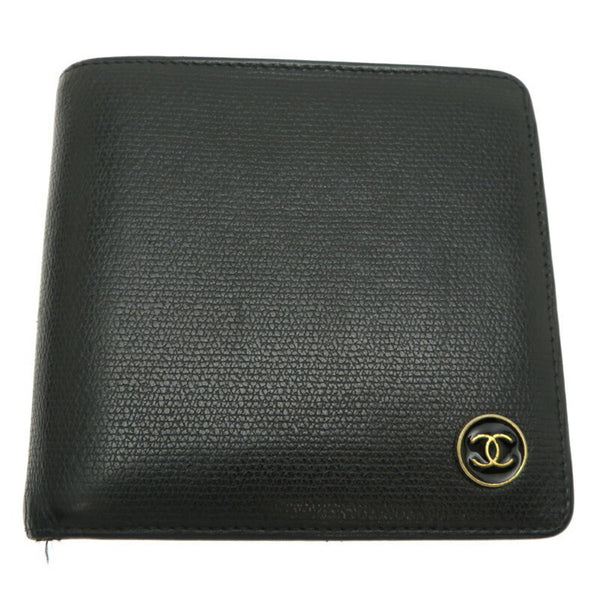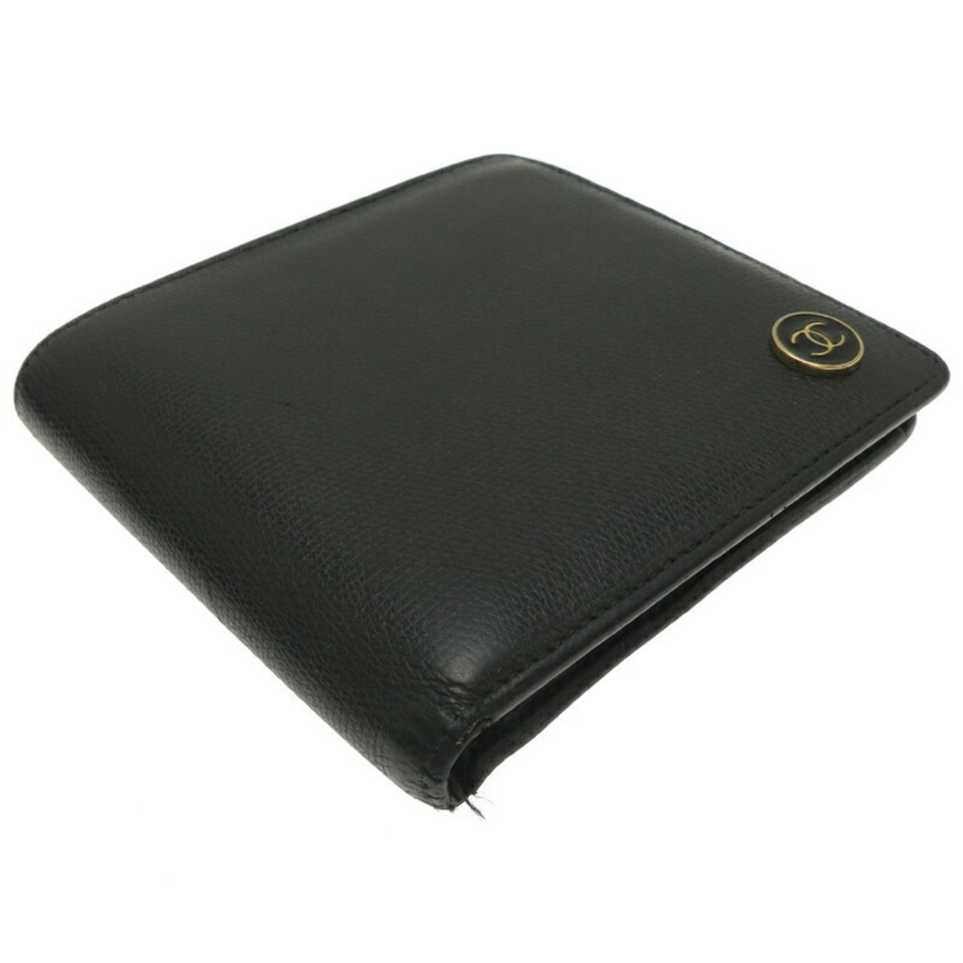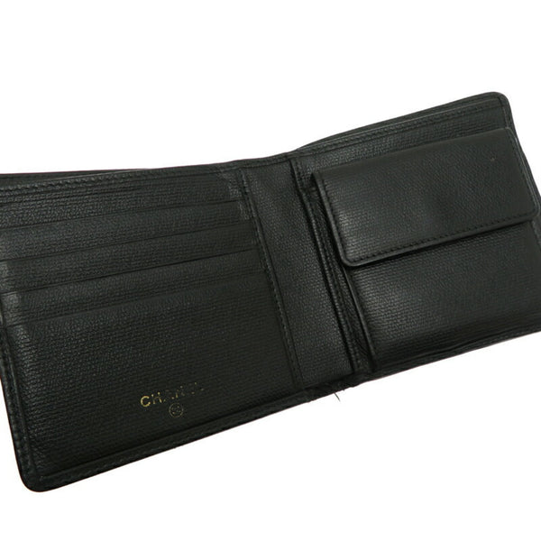 Chanel Compact Wallet Women\'s Bi-fold Leather Black