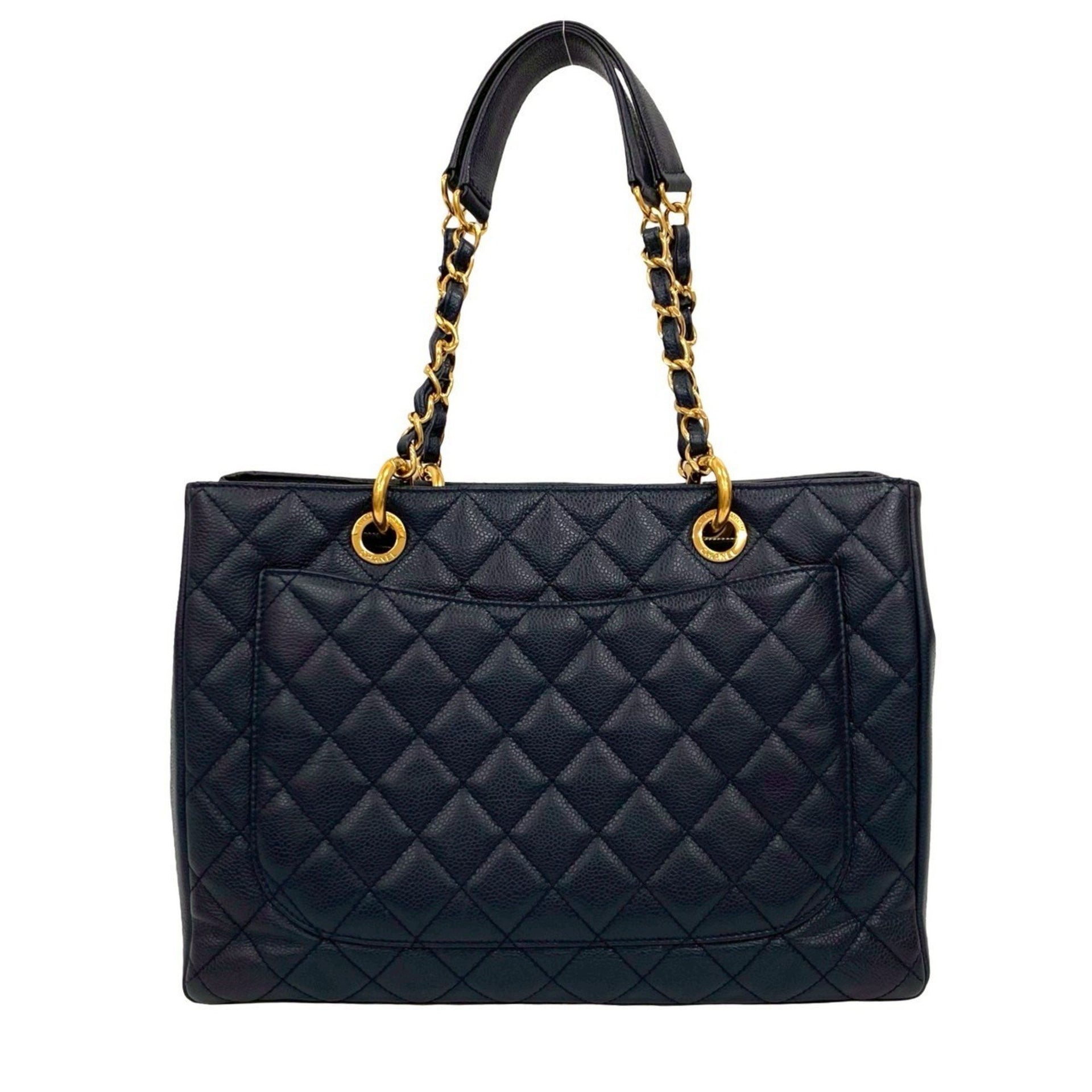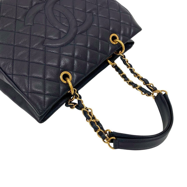 CHANEL GST Coco Mark Caviar Skin Tote Bag/Semi Shoulder Bag Navy 40477