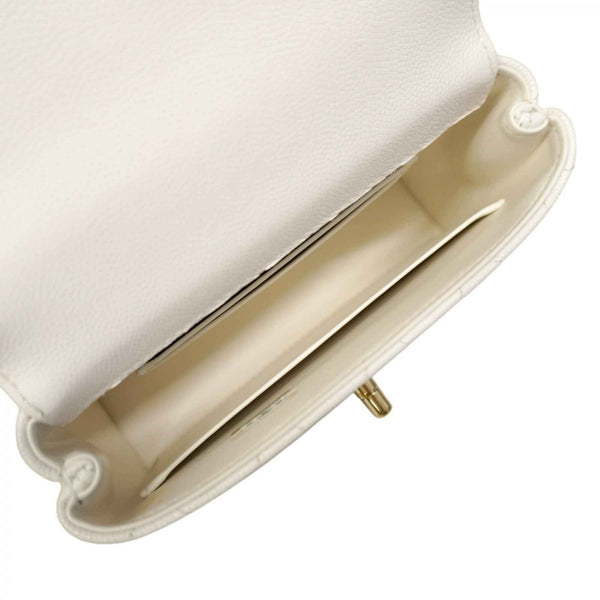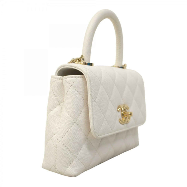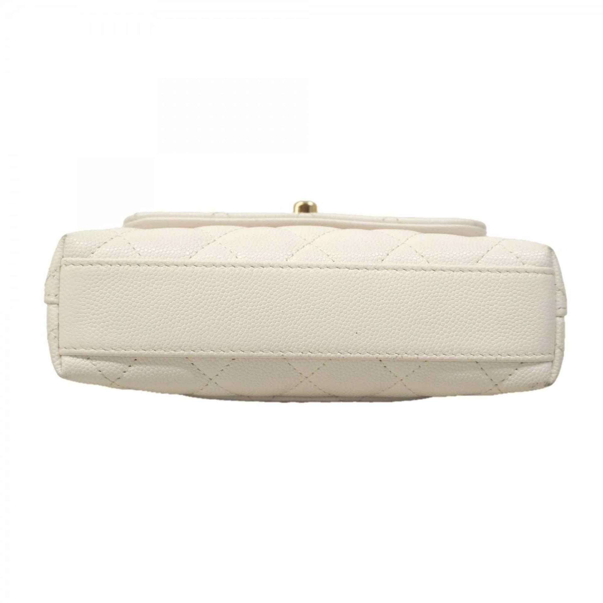 Chanel Handbag, Chain Shoulder Bag, Coco Handle, Caviar Leather, White, Champagne, 2-Way Women\'s, P2194623