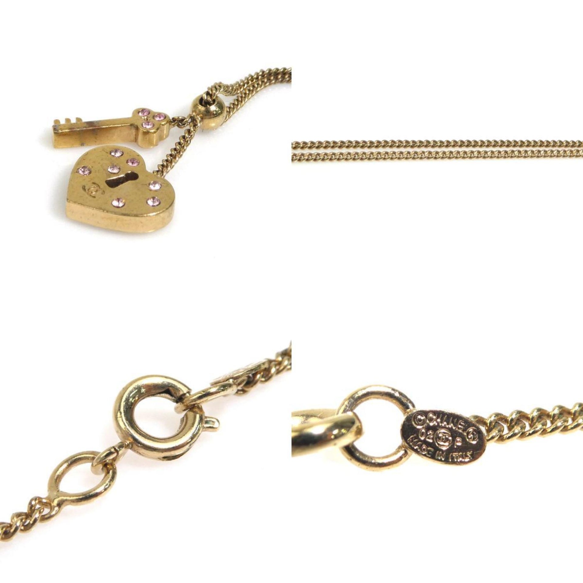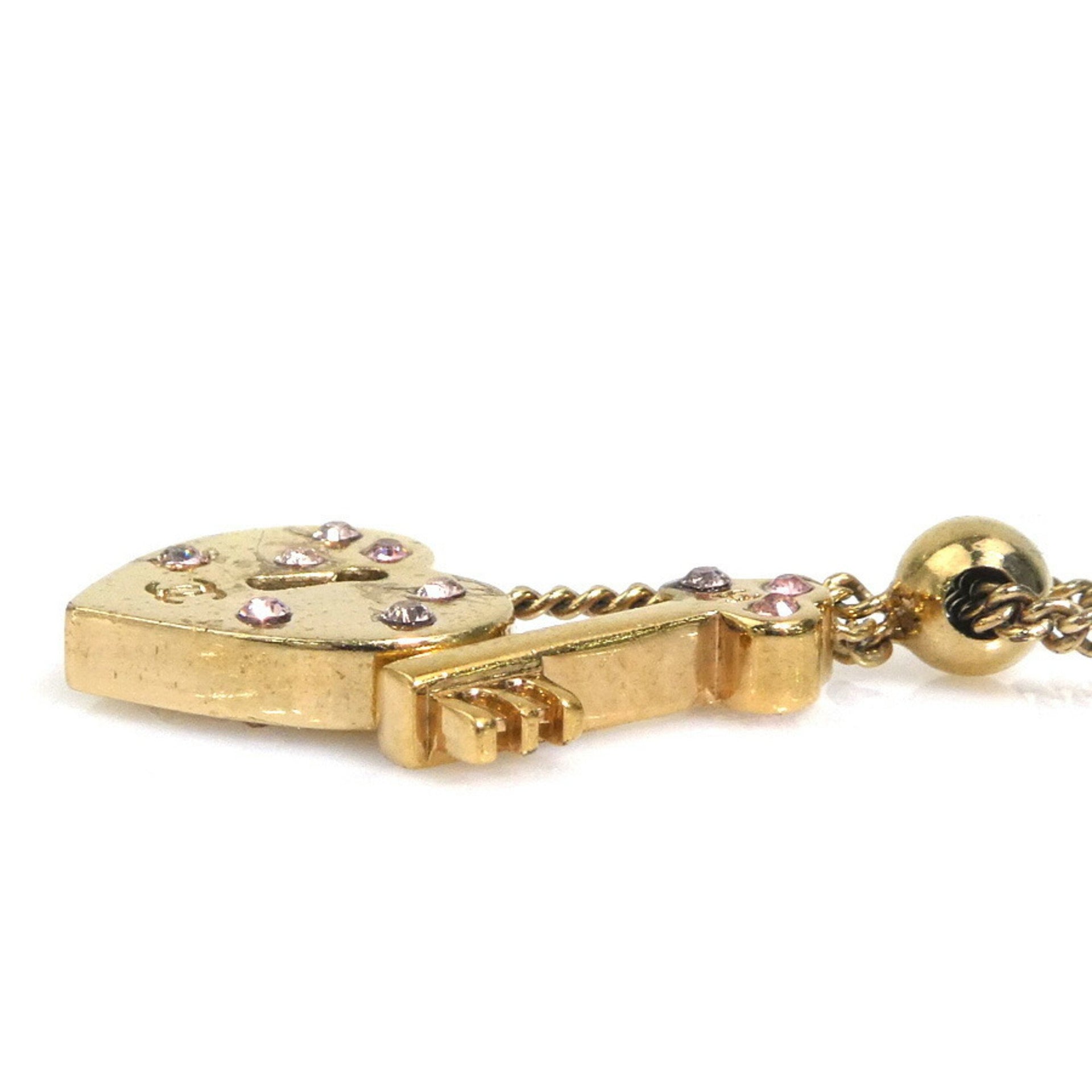 CHANEL Heart Lock & Key Necklace with Metal Rhinestones, Gold and Pink, Women\'s, e61086a