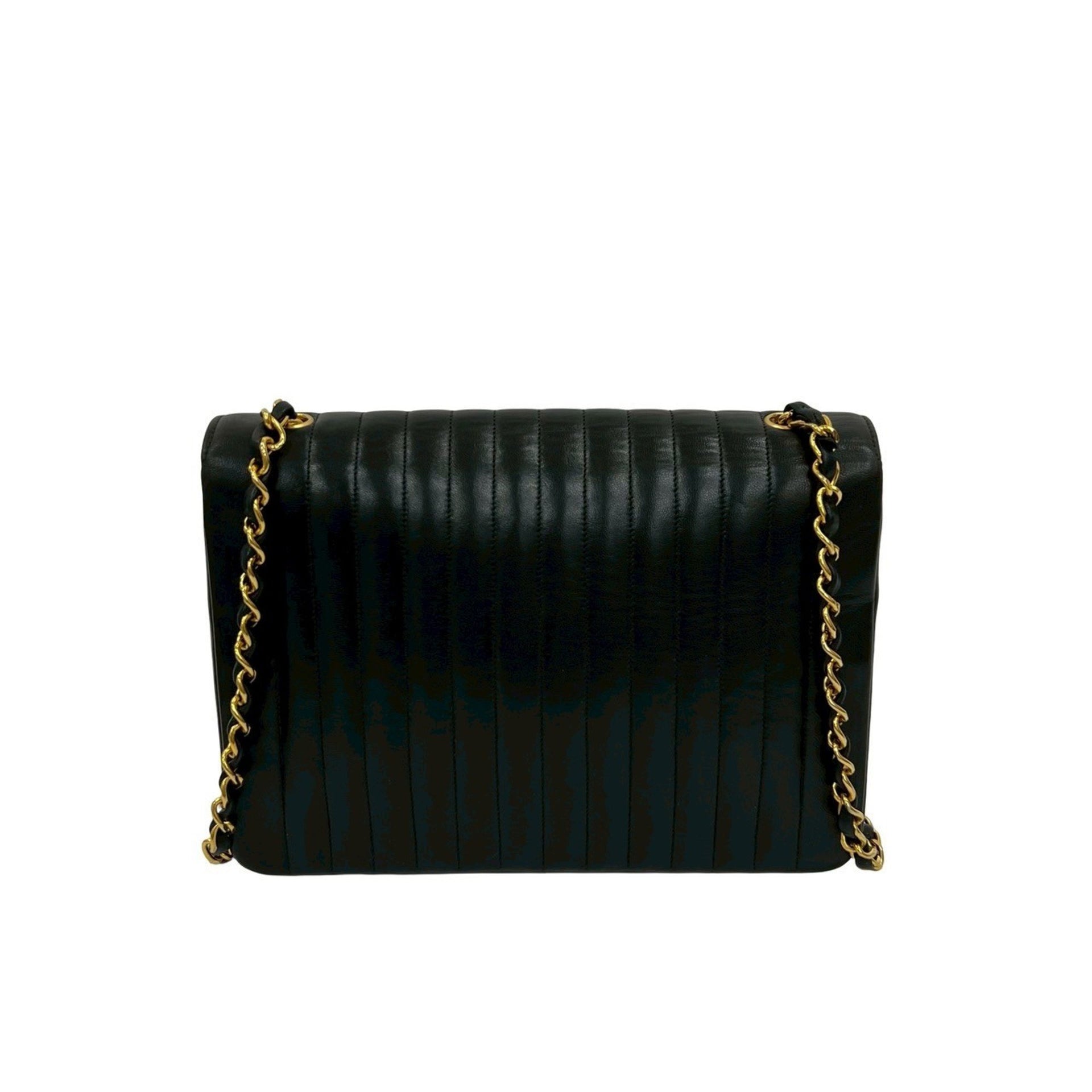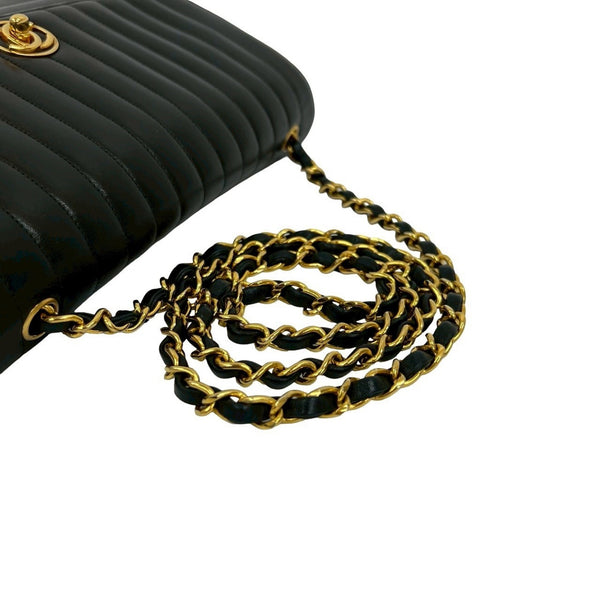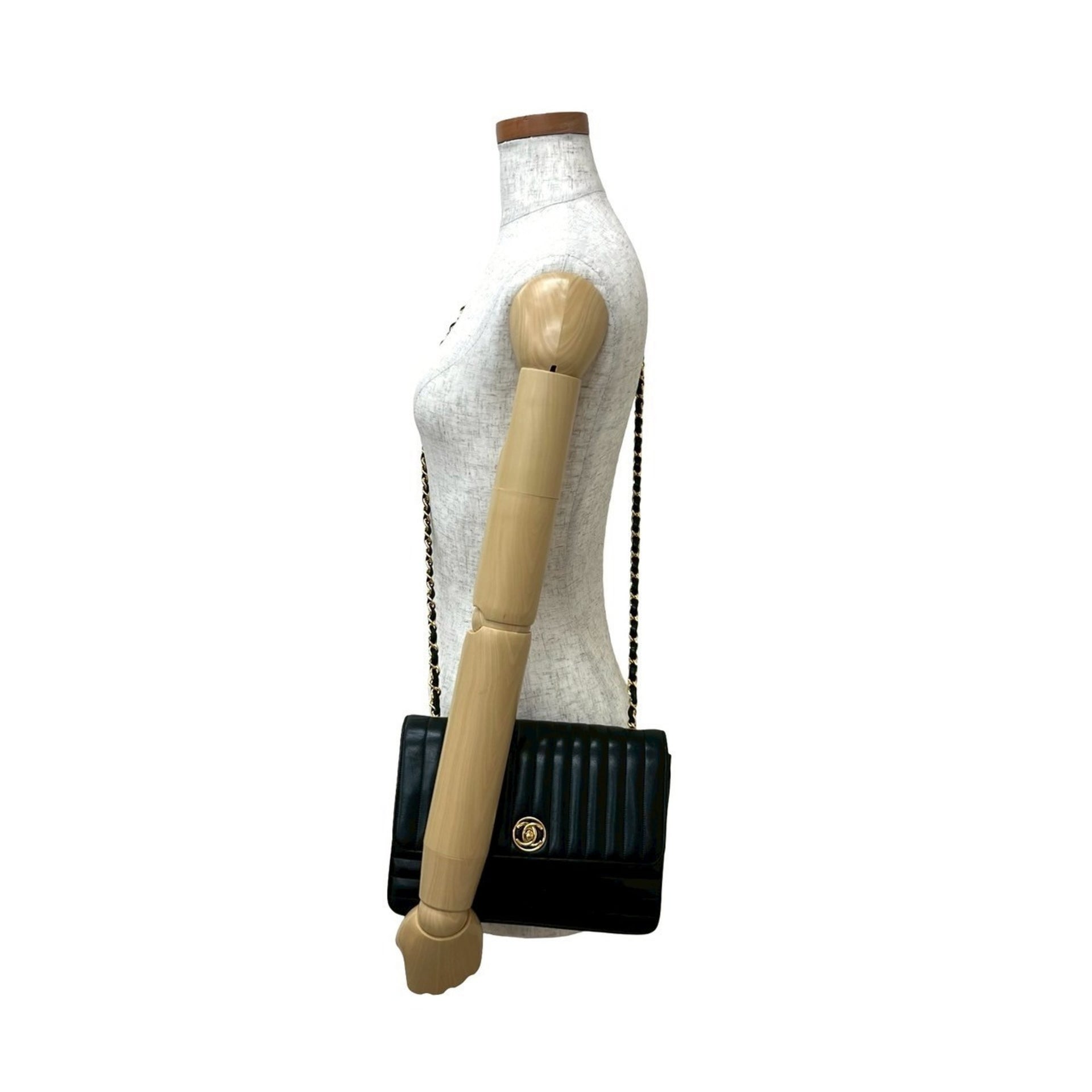CHANEL Mademoiselle Coco Mark Turnlock Hardware Lambskin Chain Shoulder Bag Black 27747
