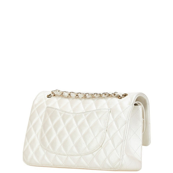 CHANEL Matelasse 25 Coco Mark Double Flap Chain Shoulder Bag Handbag White Lambskin Women\'s