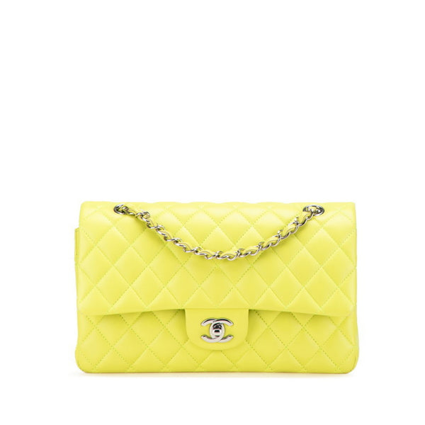 CHANEL Matelasse 25 Coco Mark Double Flap Chain Shoulder Bag Handbag Yellow Lambskin Women\'s