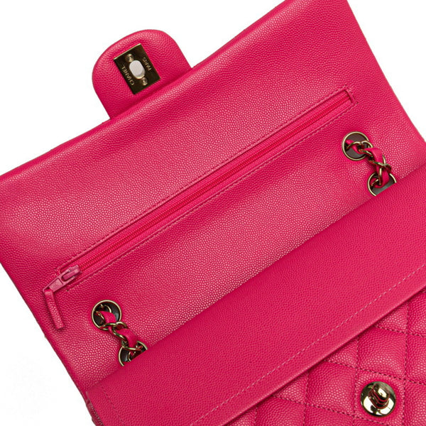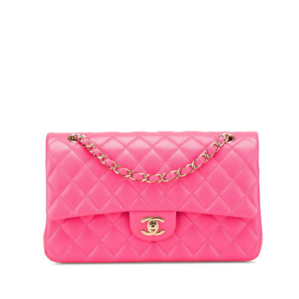 CHANEL Matelasse 25 Coco Mark Double Flap Chain Shoulder Bag in Pink Caviar Leather with Gold Hardware, Women\'s