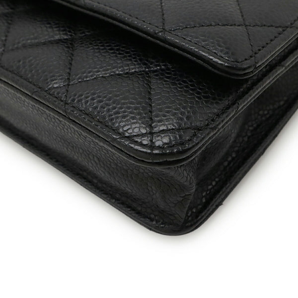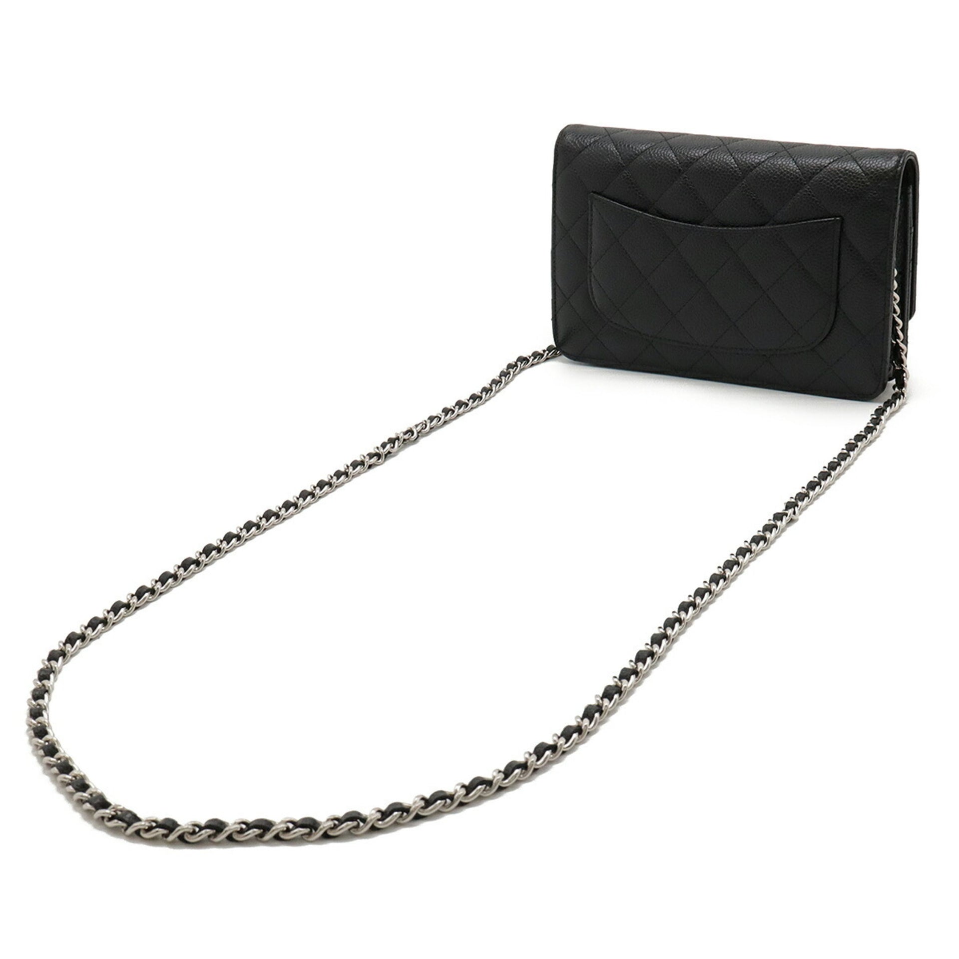 CHANEL Matelasse Chain Wallet Shoulder Bag Pochette in Black Caviar Leather A33814
