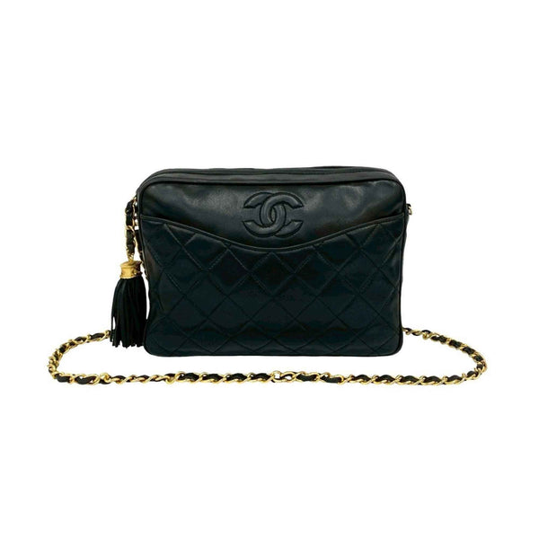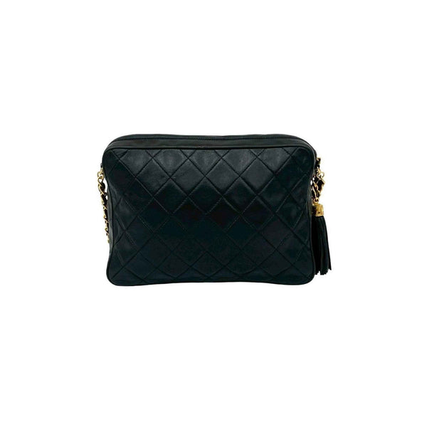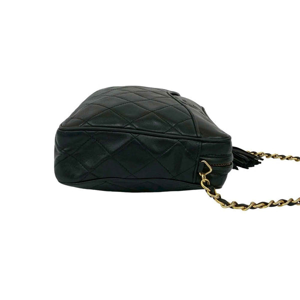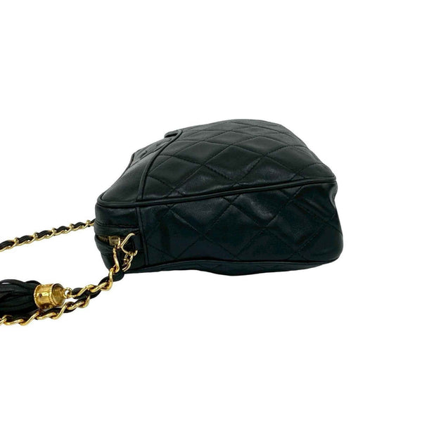 CHANEL Matelasse Coco Lambskin Leather Tassel Chain Shoulder Bag, Black, 29891