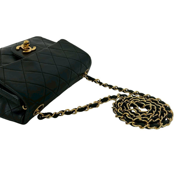 CHANEL Matelasse Coco Lambskin Leather Turnlock Chain Mini Shoulder Bag, Black, 18457