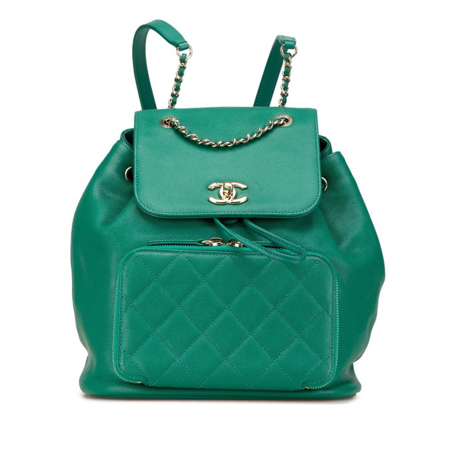 CHANEL Matelasse Coco Mark Backpack in Green Caviar Leather for Women