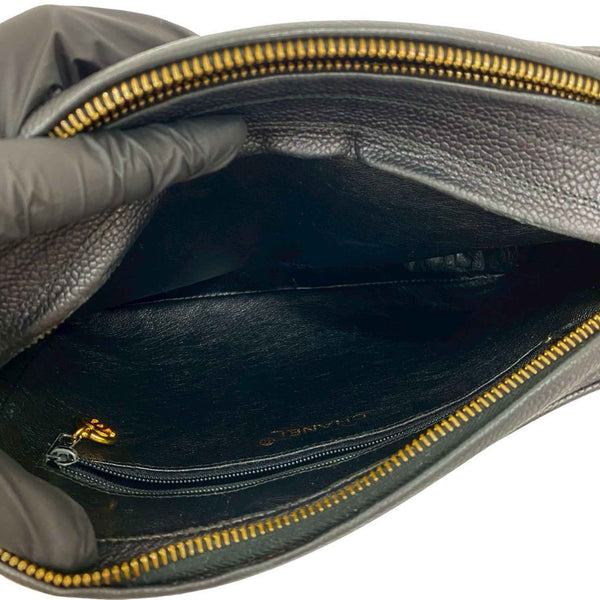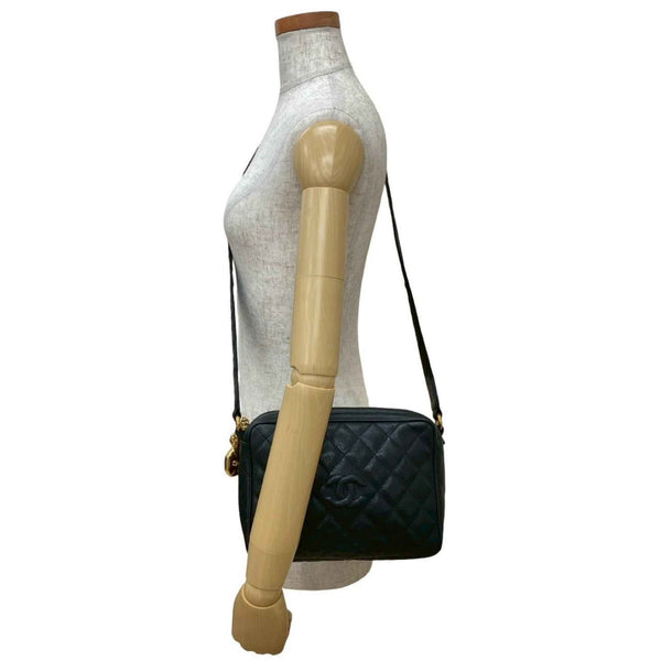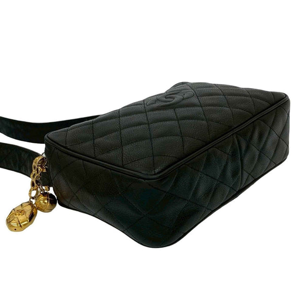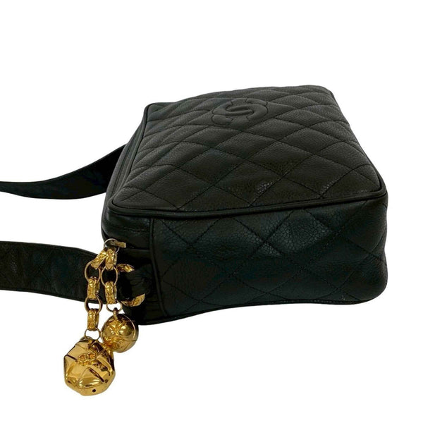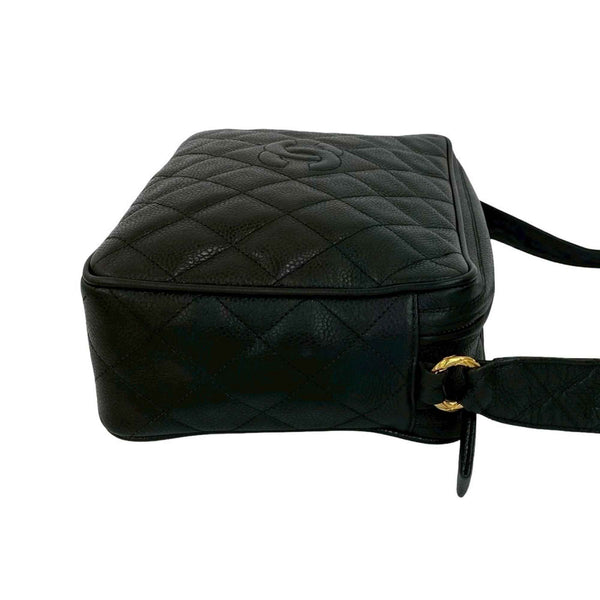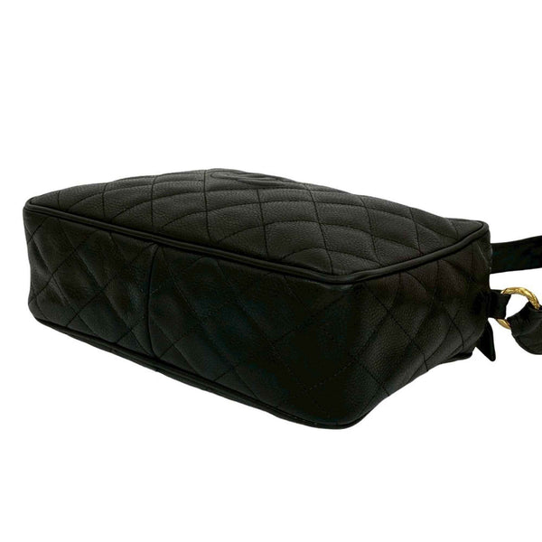 CHANEL Matelasse Coco Mark Caviar Leather Shoulder Bag Pochette Black 38893