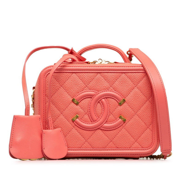 CHANEL Matelasse Coco Mark CC Figurine Handbag/Shoulder Bag, 2-Way, Pink Caviar Skin, Women\'s